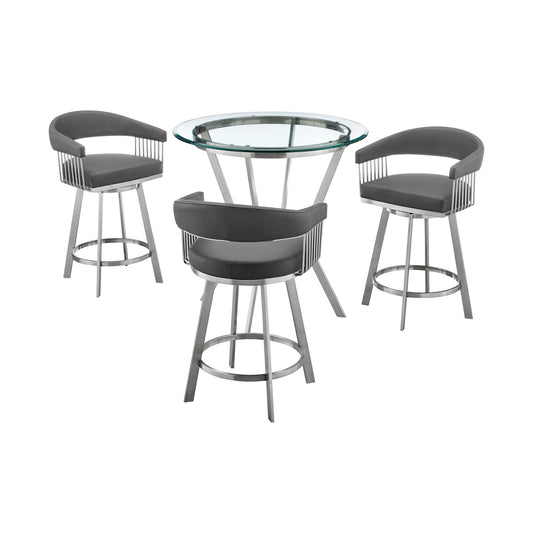 Beckham - 5 Piece Round Glass Top Dining Set - Chrome And White
