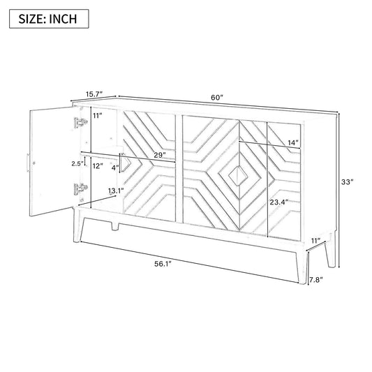 Sideboard Buffet Cabinet With Carved Doors And Adjustable Layer Board