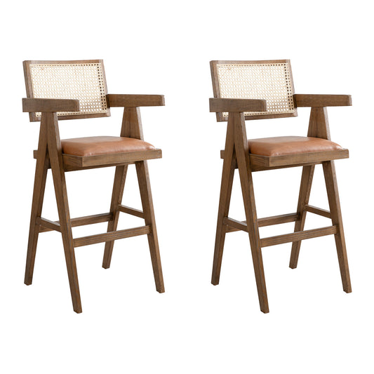 Harley - Nutmeg Brown Solid Wood And Rattan Upholstered 30" Bar Height Barstool