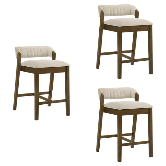 Greely Saddle Barstool Set With Fabric Upholstery - Light Gray