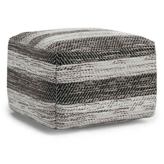 Safford - Square Woven Outdoor / Indoor Pouf - Black / White