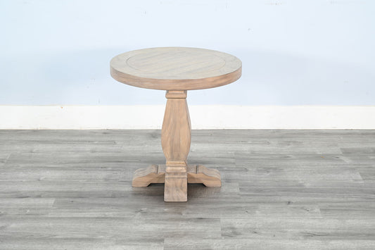 Round Wooden Table With Metal Scrollwork Legs - White Washed