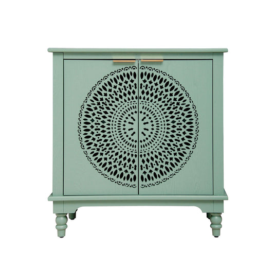 Curved Sideboard Wooden Console Table With 4 Doors And Adjustable Shelves For Living Room - Blue
