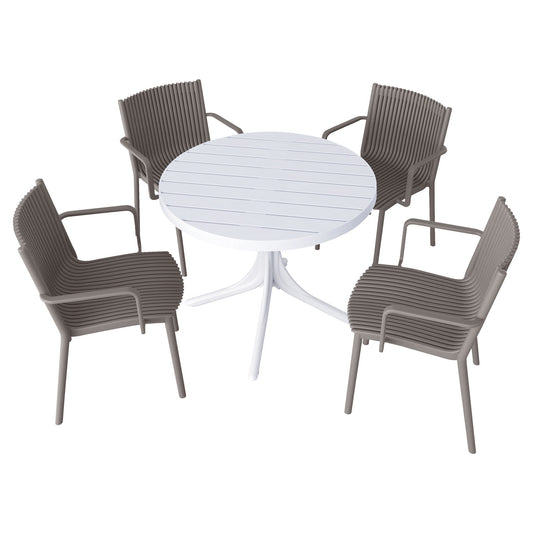 5 Piece Outdoor Patio Dining Set With 4 Armchairs And Table - Beige