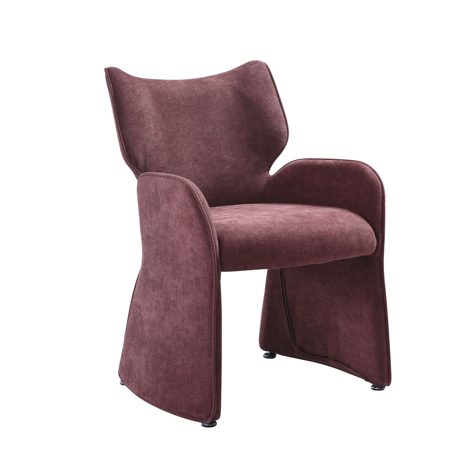 Introduce a sense of sculptural elegance and tailored comfort to your dining area with the Alicia Modern Curved Back Dining Chair. Fully upholstered and effortlessly chic, the Alicia chair is available in two refined shades — a deep, luxurious Plum and a versatile, soft Gray. Each fabric option brings a rich, tactile experience to the space while maintaining a polished, modern aesthetic suited for both casual and formal interiors. What sets the Alicia apart is its architectural silhouette: the generously curved backrest merges fluidly into a set of full, flared arms, creating a cocoon-like seat that invites you to settle in. This wraparound design not only offers elevated visual appeal but also provides supportive comfort across the back, sides, and seat. With medium back height and structured foam padding, the chair encourages upright posture while remaining relaxed and enveloping — perfect for lingering conversations at the dining table or comfortable seating in a lounge corner. The sled-style base is crafted from durable welded metal and offers both strength and minimalist flair. Fully upholstered down to the legs, the Alicia chair exudes a seamless, cohesive look that elevates any room it inhabits. Floor-safe rubber pads beneath the base ensure smooth positioning and surface protection, making this chair suitable for hardwood, tile, or rug-covered spaces. With no assembly required, the Alicia chair arrives ready to transform your space with designer-level sophistication and comfort. Whether you’re curating a bold statement with plum or layering in neutral tones with gray, the Alicia chair brings graceful form and everyday function to the forefront of modern dining.