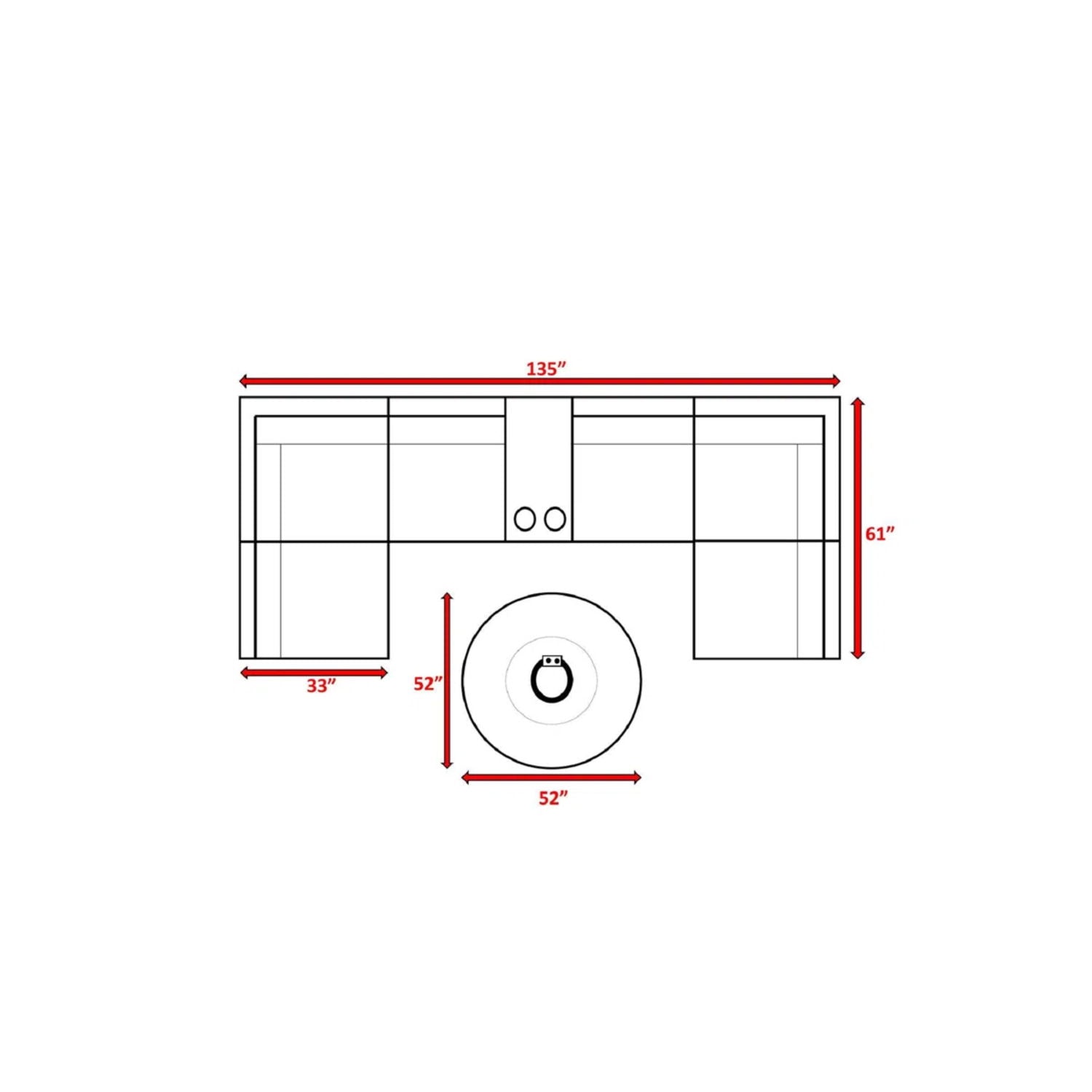- 8-Piece Modular Set: Includes 6 sectional seating pieces, 1 round fire pit table, and 1 side table with cup holders