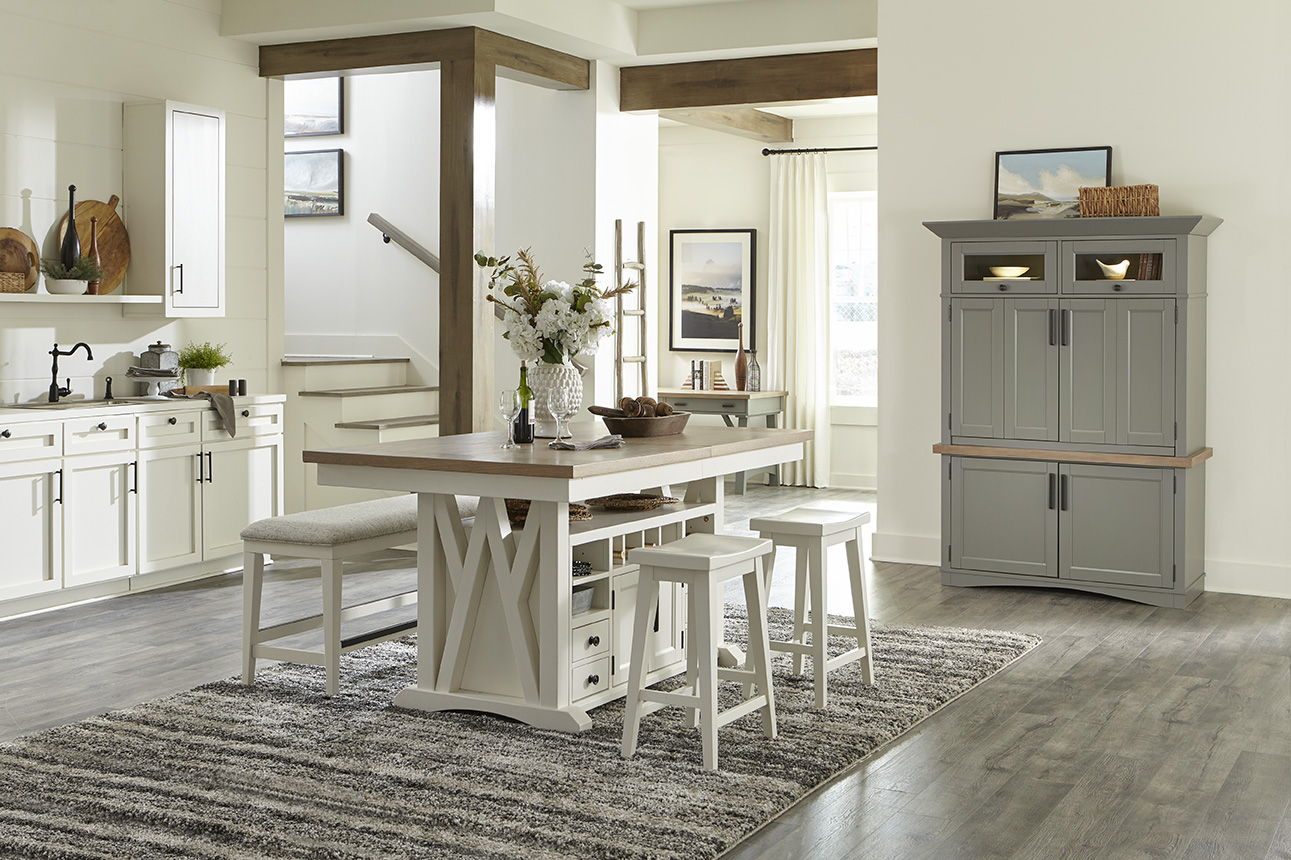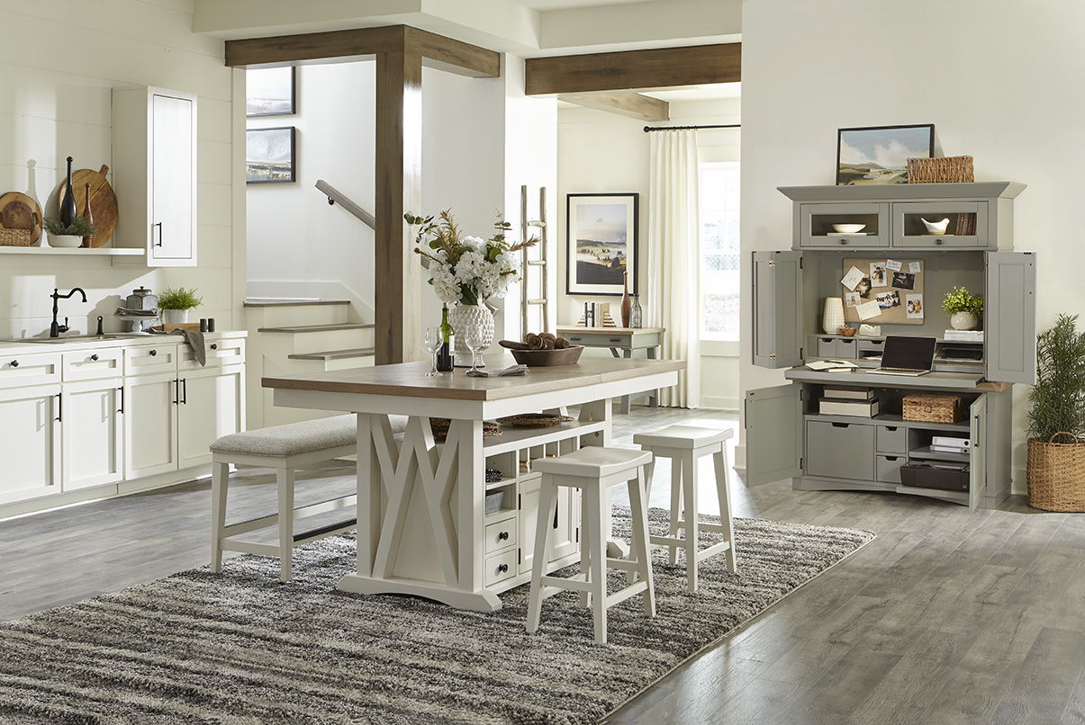 Whether you're working from home or just need a place to organize crafts and paperwork, this Americana Modern Workstation with LED Light is sure to be a favorite. Packed with functionality, it features a pull-out tray for an extended work surface, energy-efficient LED lighting on a dimmer, generous storage and dual AC and USB outlets—all in a fashionable cotton white finish with contrasting wood-grain accents. When you're done, just close its doors to keep papers and clutters hidden from sight.