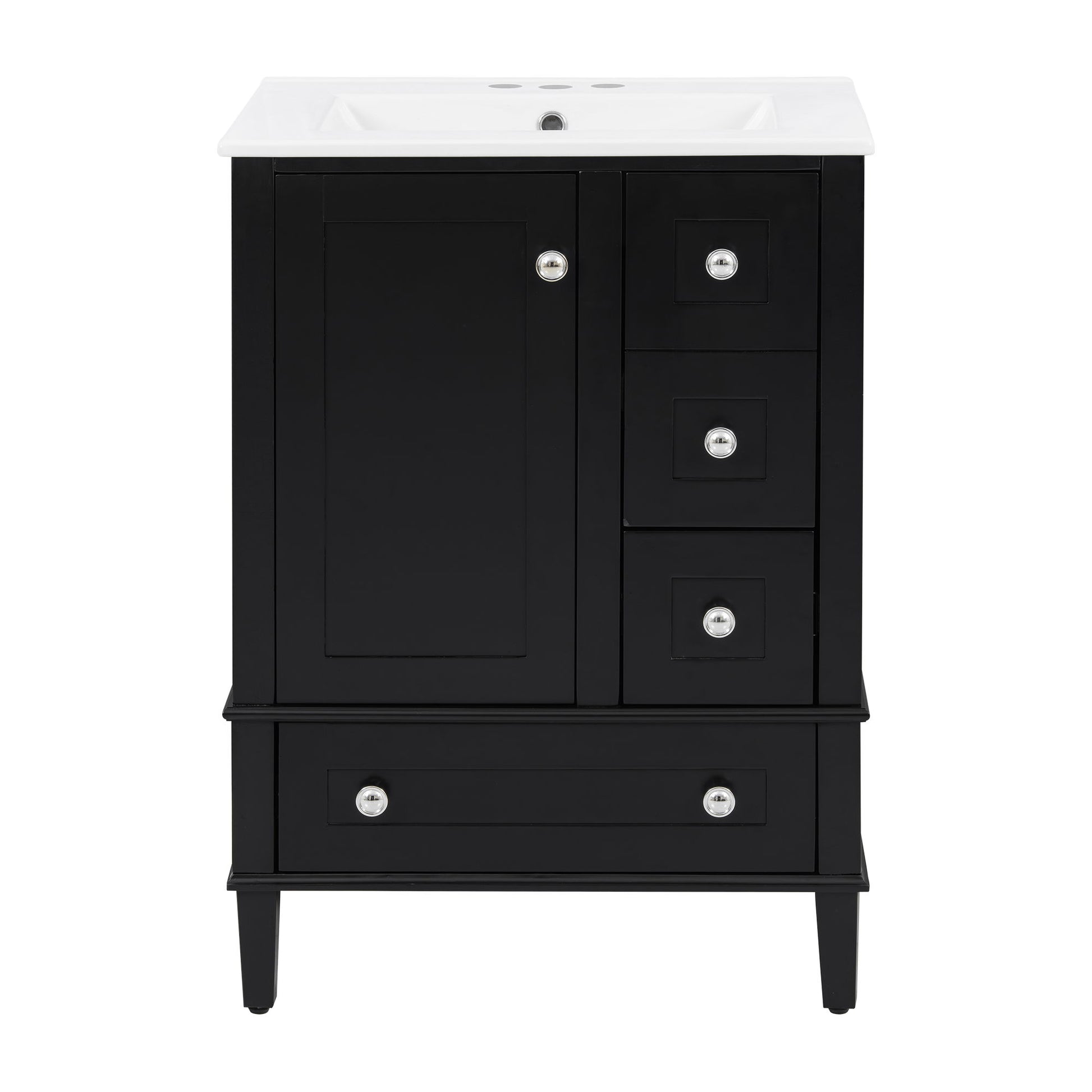 Bathroom Vanity With Integrated Basin, Soft Close Drawers, Door Mounted Double Layer Shelf - Black