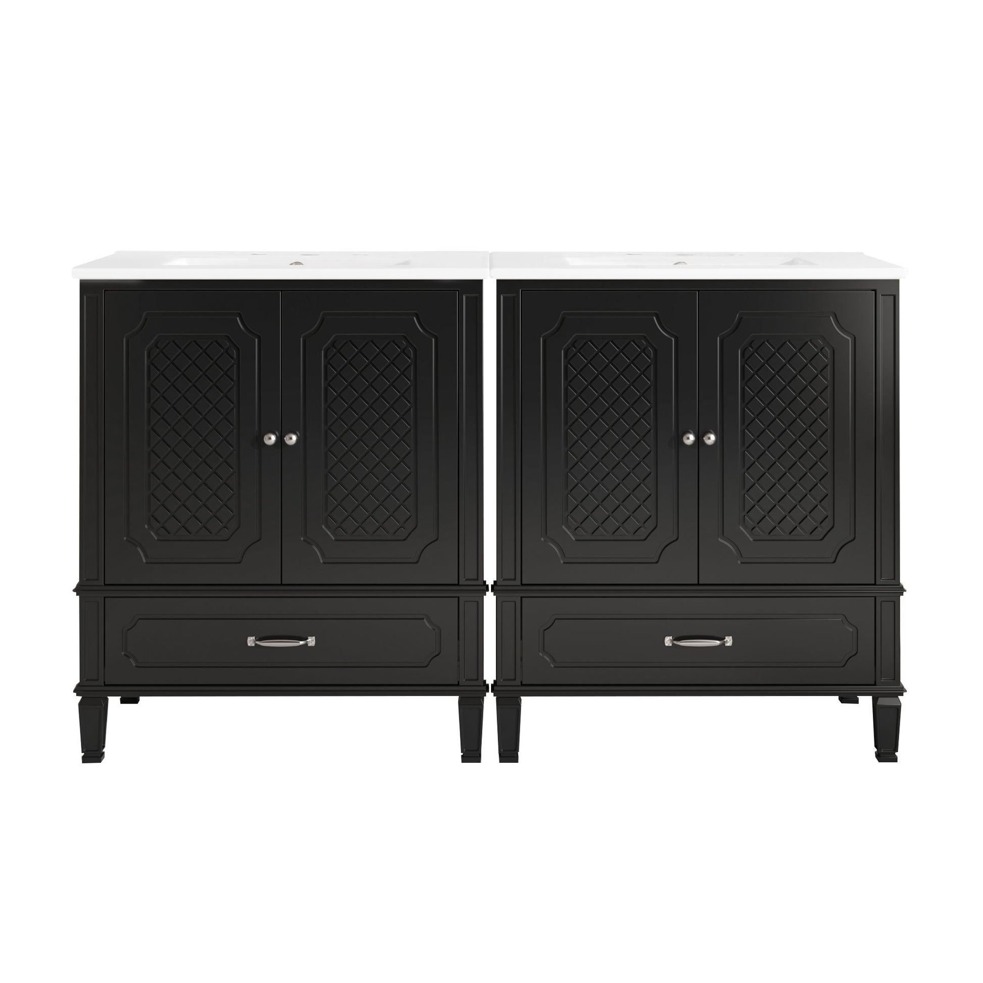 Double Bathroom Vanity With Dual Sinks With Door Organizers, 2 Drawers (Set of 2) - Black