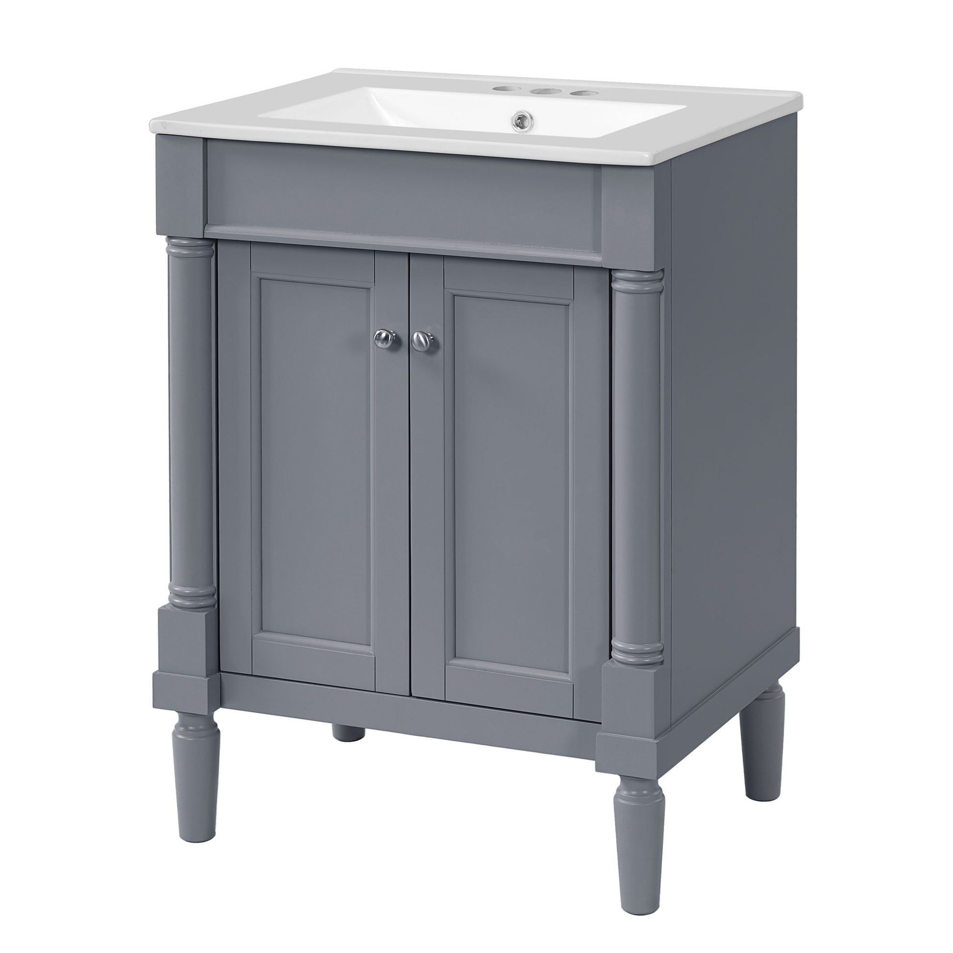 24" Bathroom Vanity With Top Sink, 2 Tier Storage Cabinet - Gray
