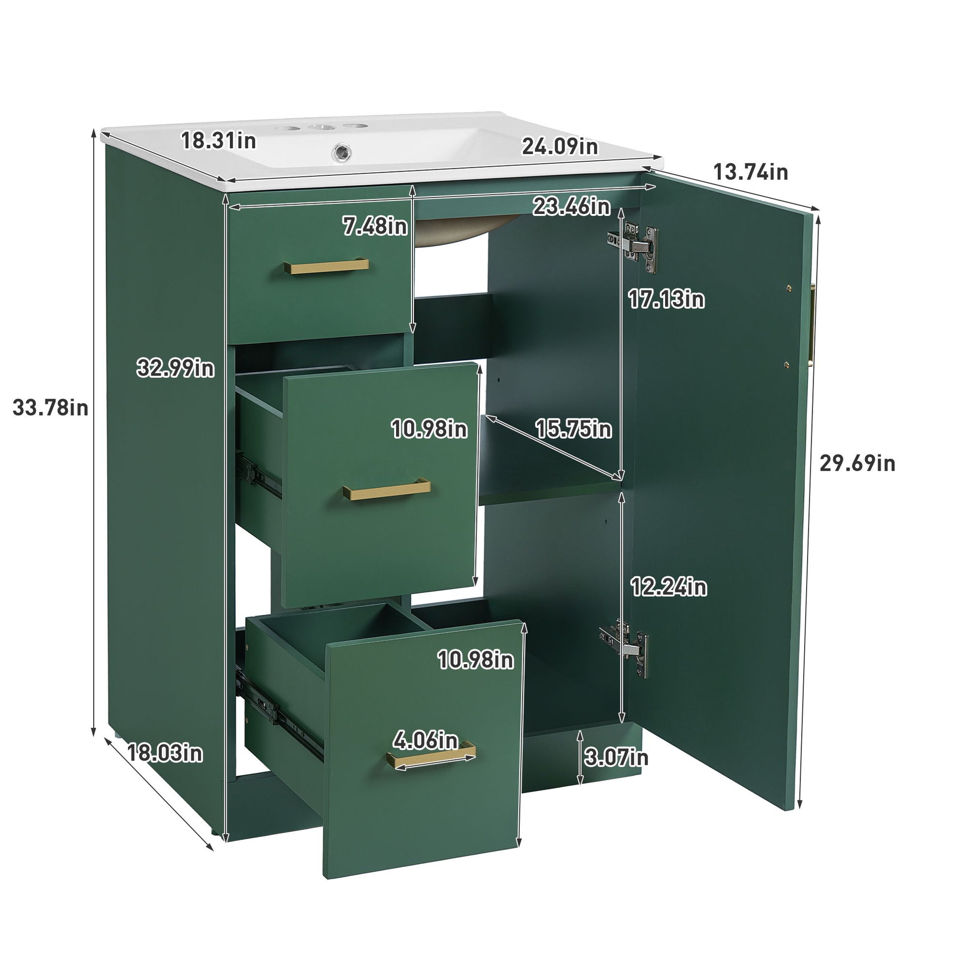 Bathroom Vanity With Under Mount Sink, 2 Drawers And Soft Closing Door, Rectangular Design - Green