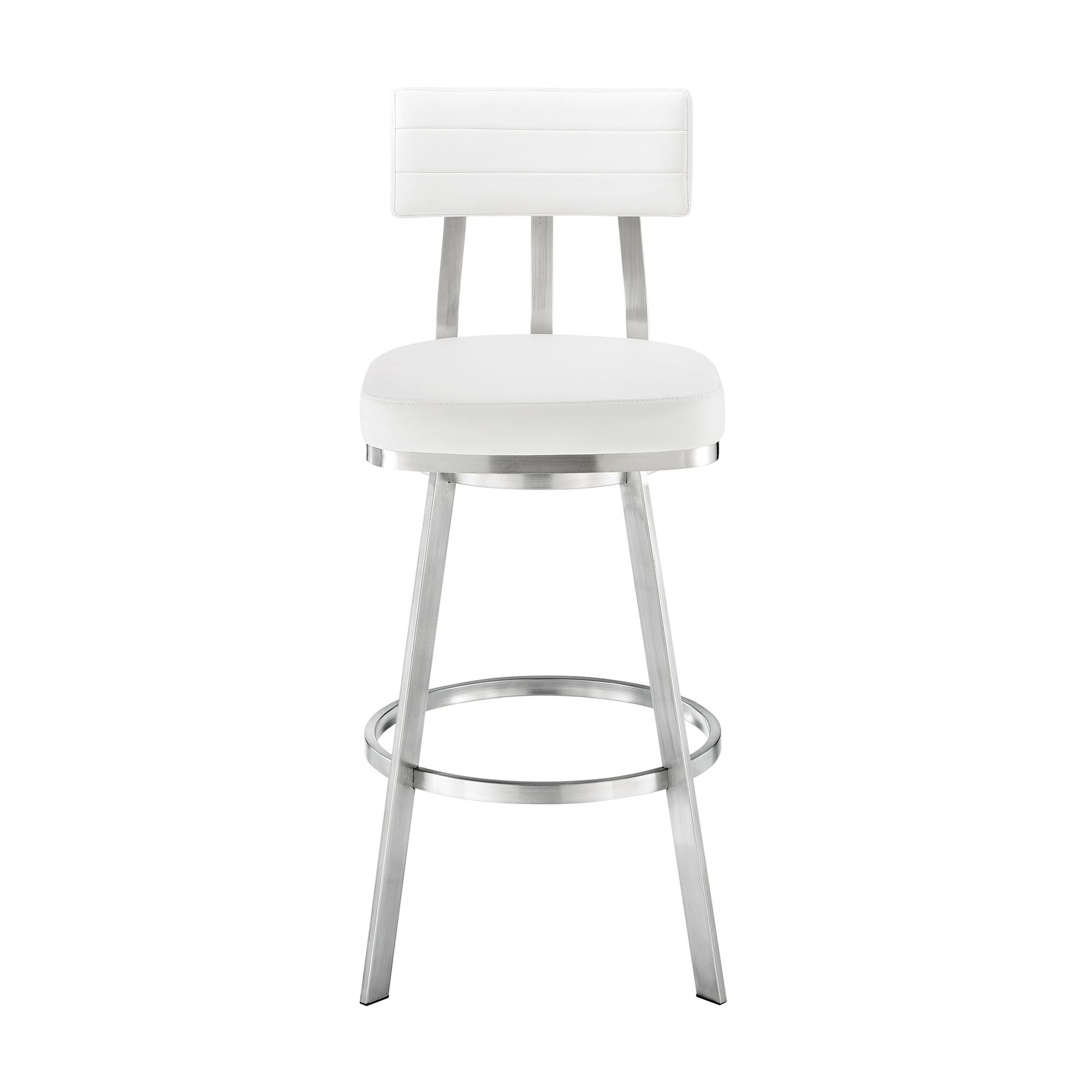 Benjamin - Swivel Bar Stool - Brushed Silver / White