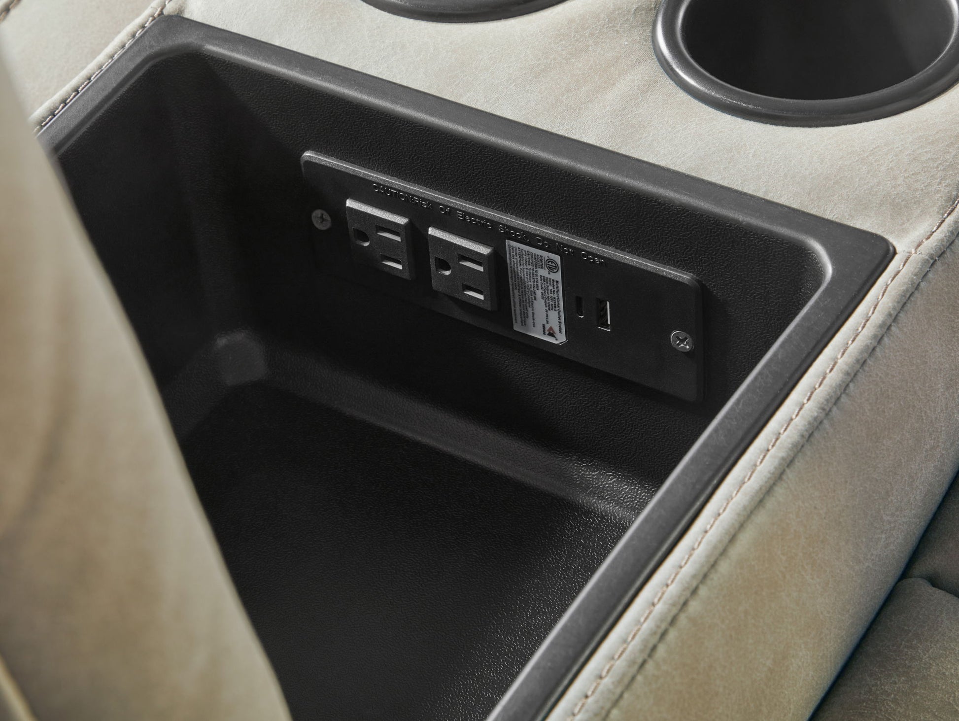 The Caldwell modular reclining power sectional is perfectly scaled for smaller spaces. Offering a neutral colored high-performance fabric cover, Caldwell features generously padded arms and USB charging in the easy-to-operate switches. Center console includes cup holders and storage space to tuck away all the necessities! Want to go cordless? Caldwell is ready to easily mount any FreeMotion® bracket and battery, allowing you to float it wherever you want, no wall required!