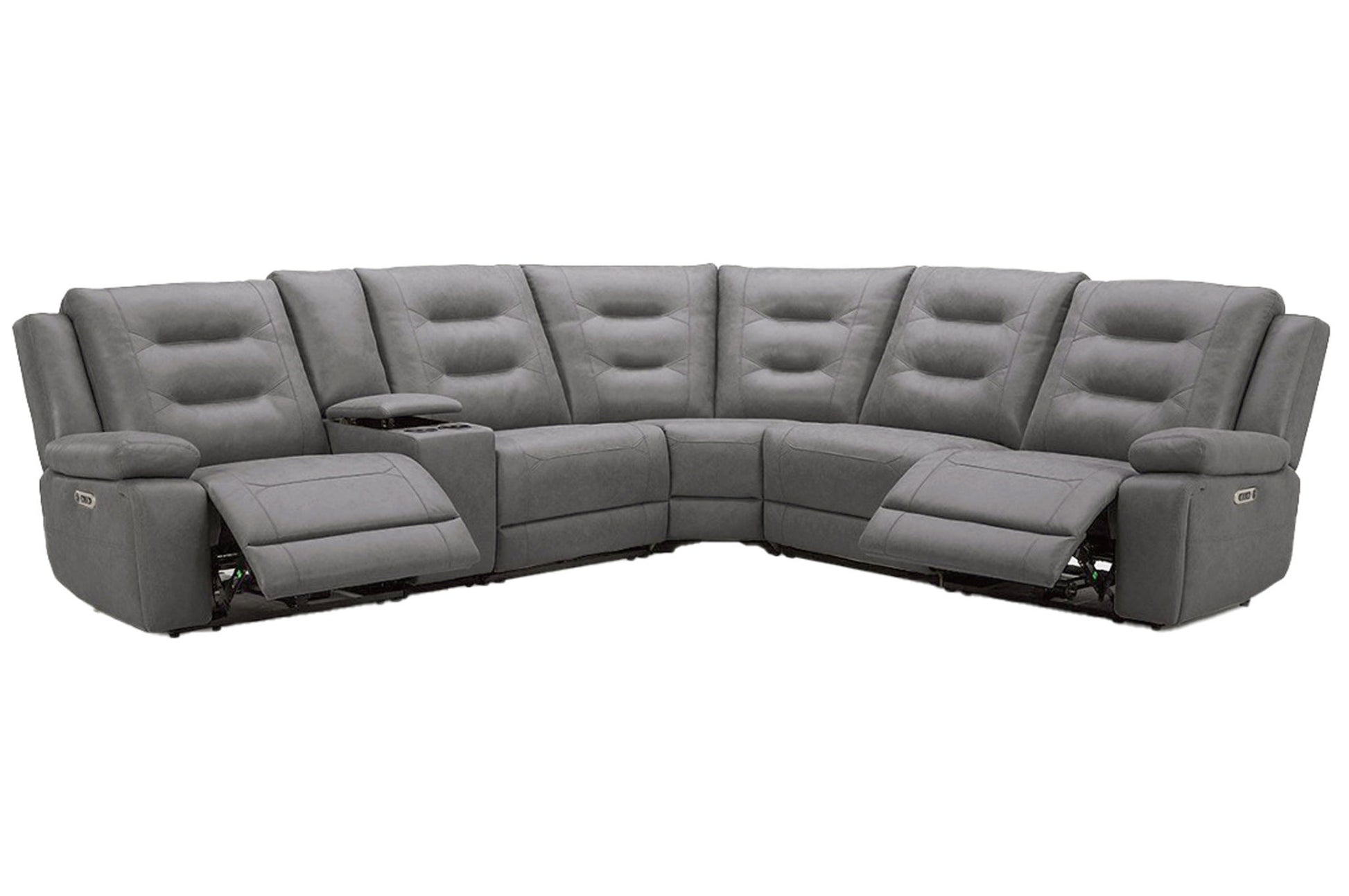 Caldwell - 6 Piece Modular Power Reclining Sectional With Power Adjustable Headrests - Tahoe Charcoal