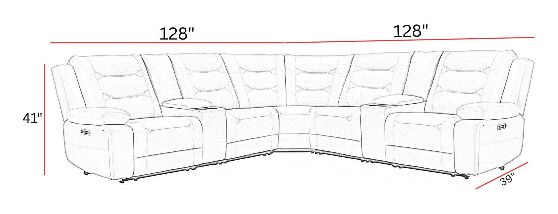 Caldwell - 7 Piece Modular Power Reclining Sectional With Power Adjustable Headrests With 2 Consoles - Tahoe Fog