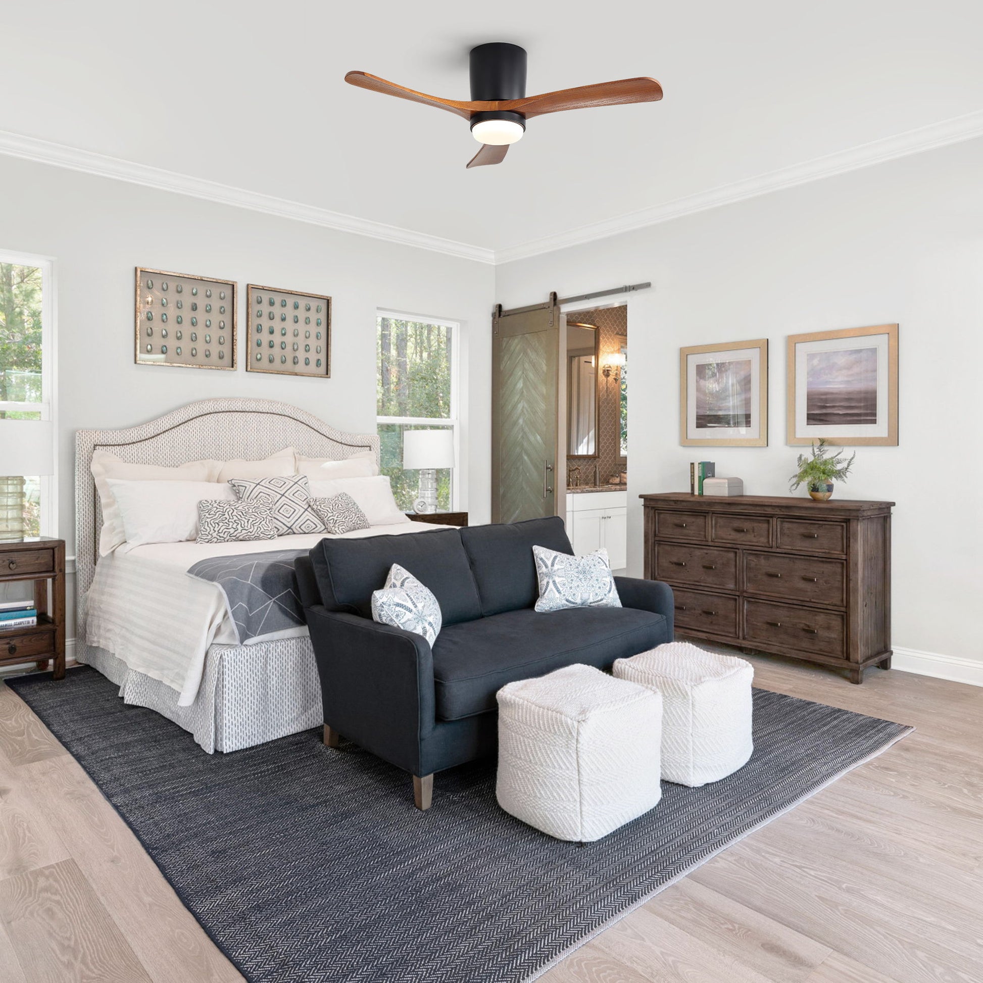 Ceiling Fan With Light, Dimmable 3 Color LED, 1 / 4 / 8H Timer, Silent For Bedroom - Matte Black
