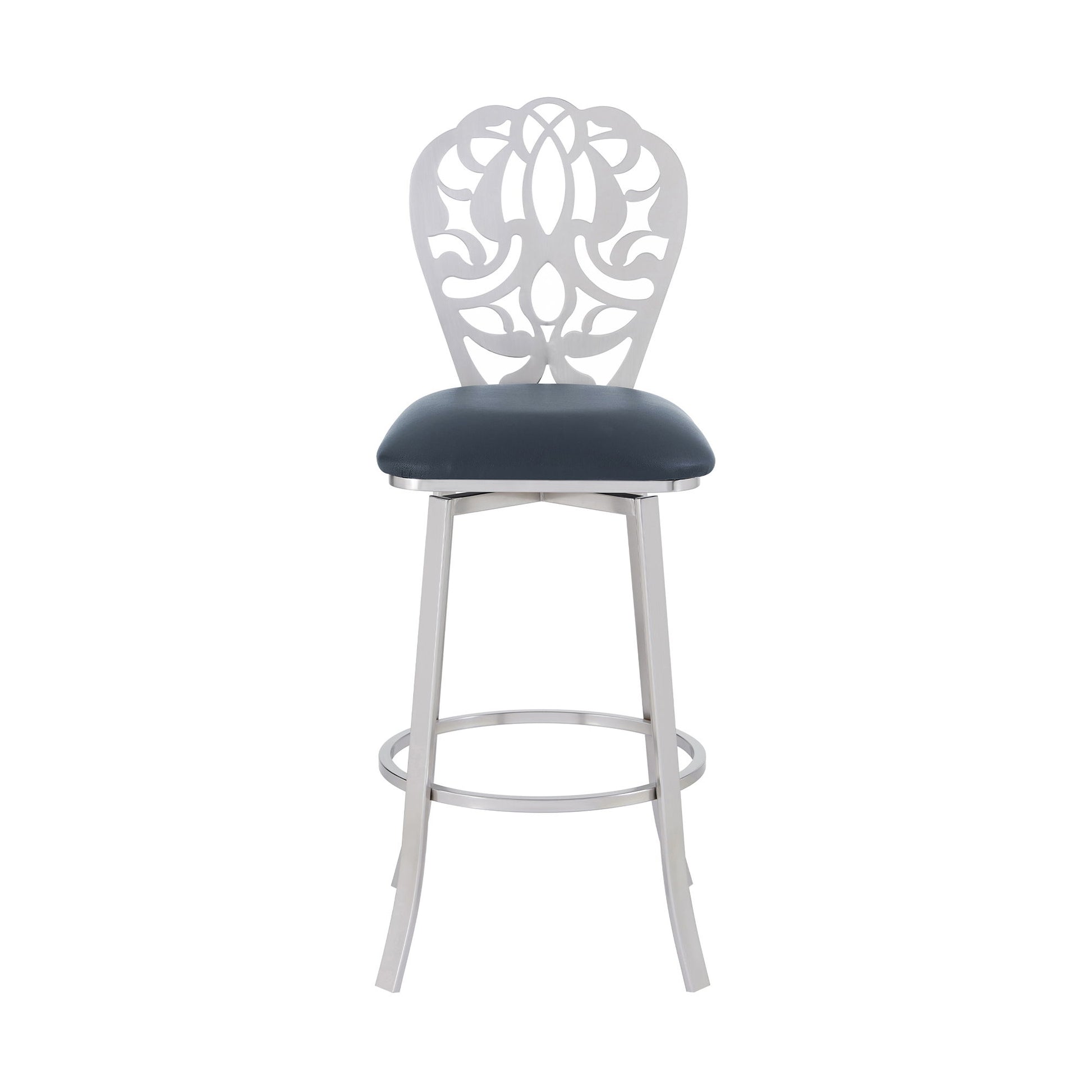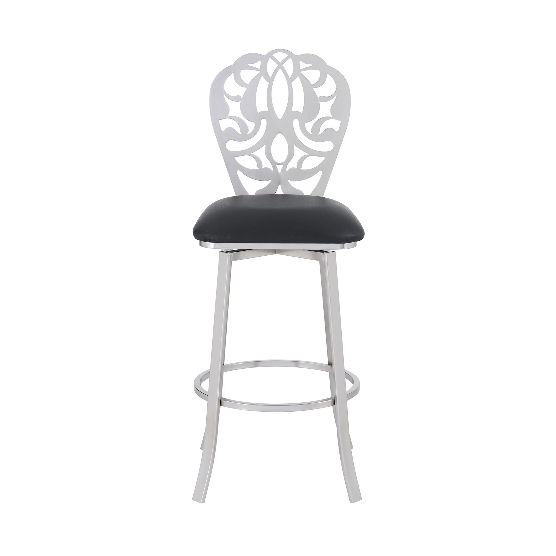 The Armen Living Cherie contemporary counter heght barstool features an attractive, yet adaptable aesthetic frame design. A wonderful choice for both the kitchen and the home bar setting, the Cherie comes with a 360 degree swivel seat that allows for a wide range of movement and easy socialization. The Cherie's Stainless Steel finish frame assures an unmatched degree of durability while complimenting contemporary design sentiments. Padded with foam, the Cherie's Black Faux Leather upholstered seat offers exceptional support that is further enhanced by the stool's added footrest.