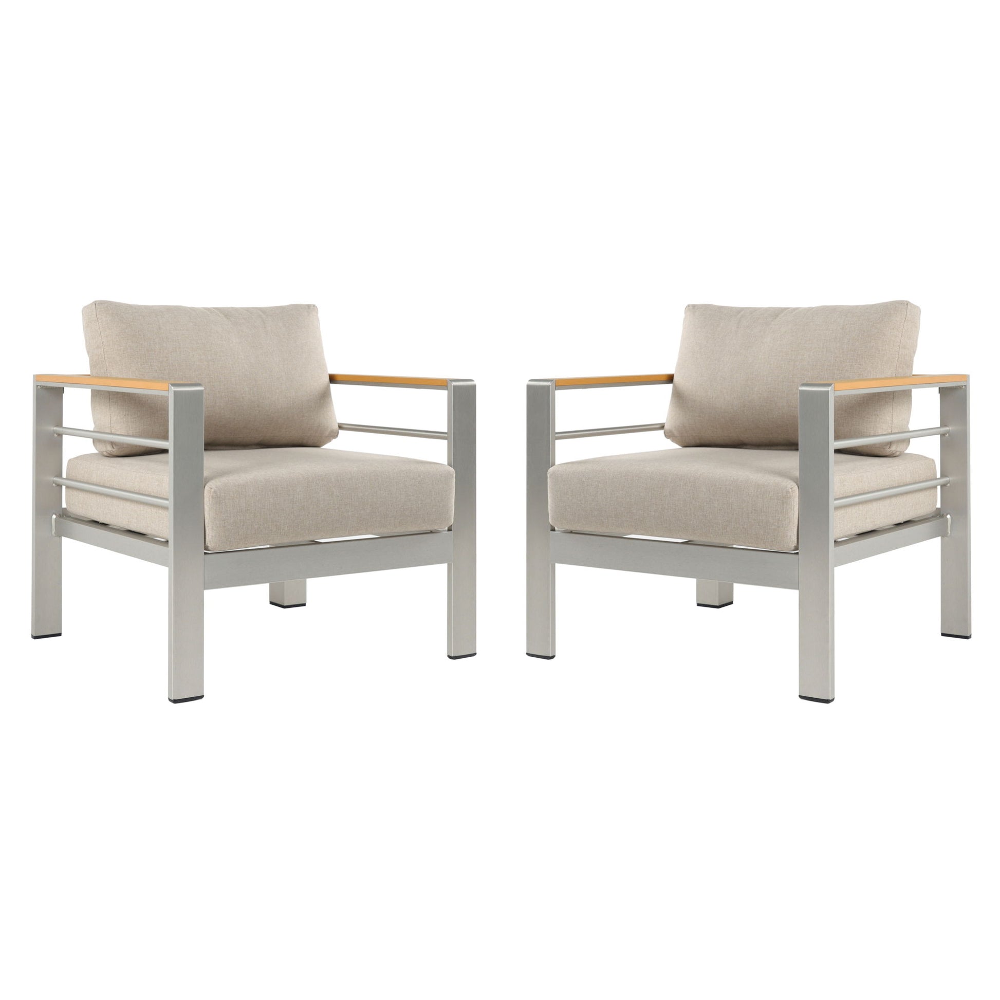 Cora - Outdoor Aluminum Club Chair Set Frame With Cushion Durable And Stylish Seating For Patio - Beige / Natural / Silver