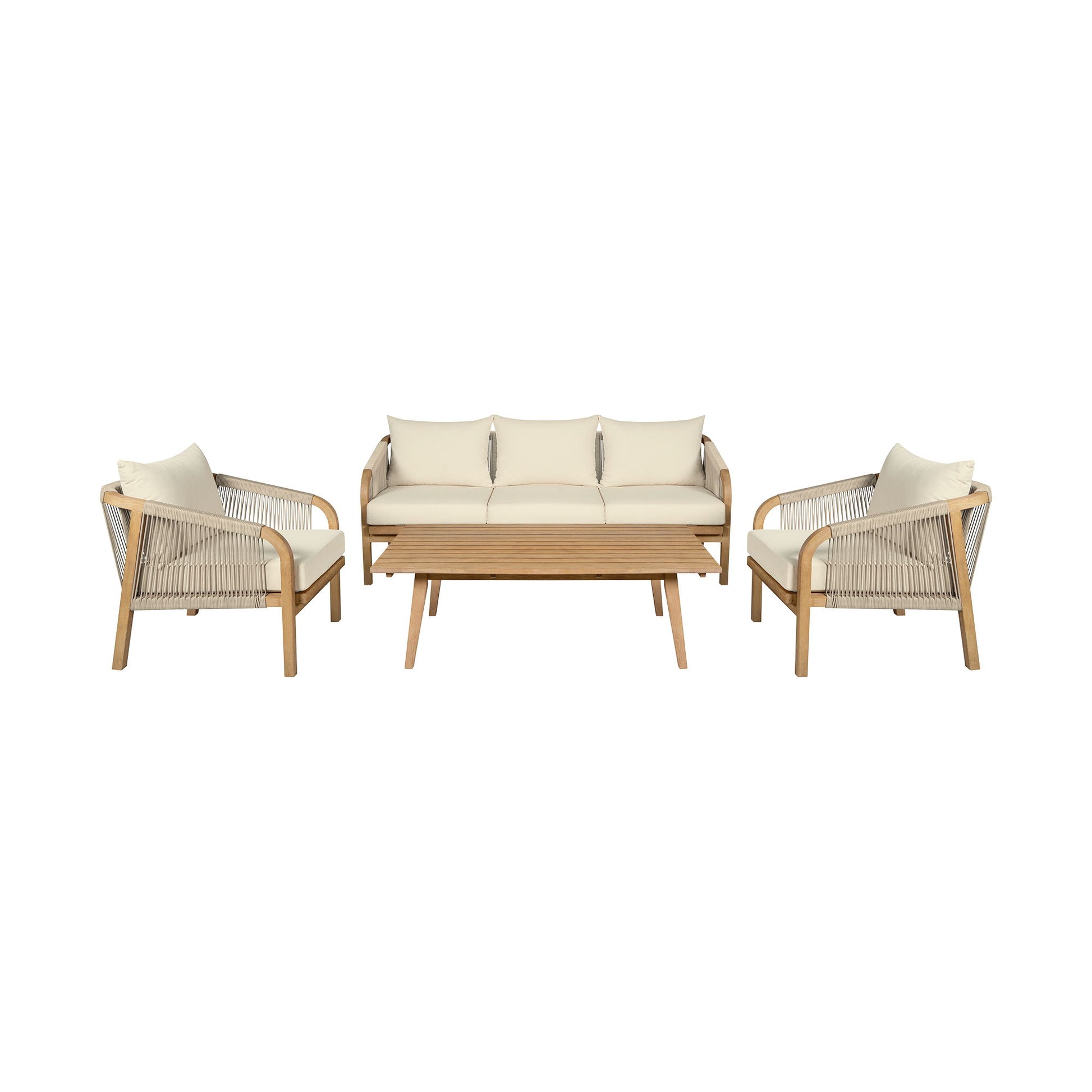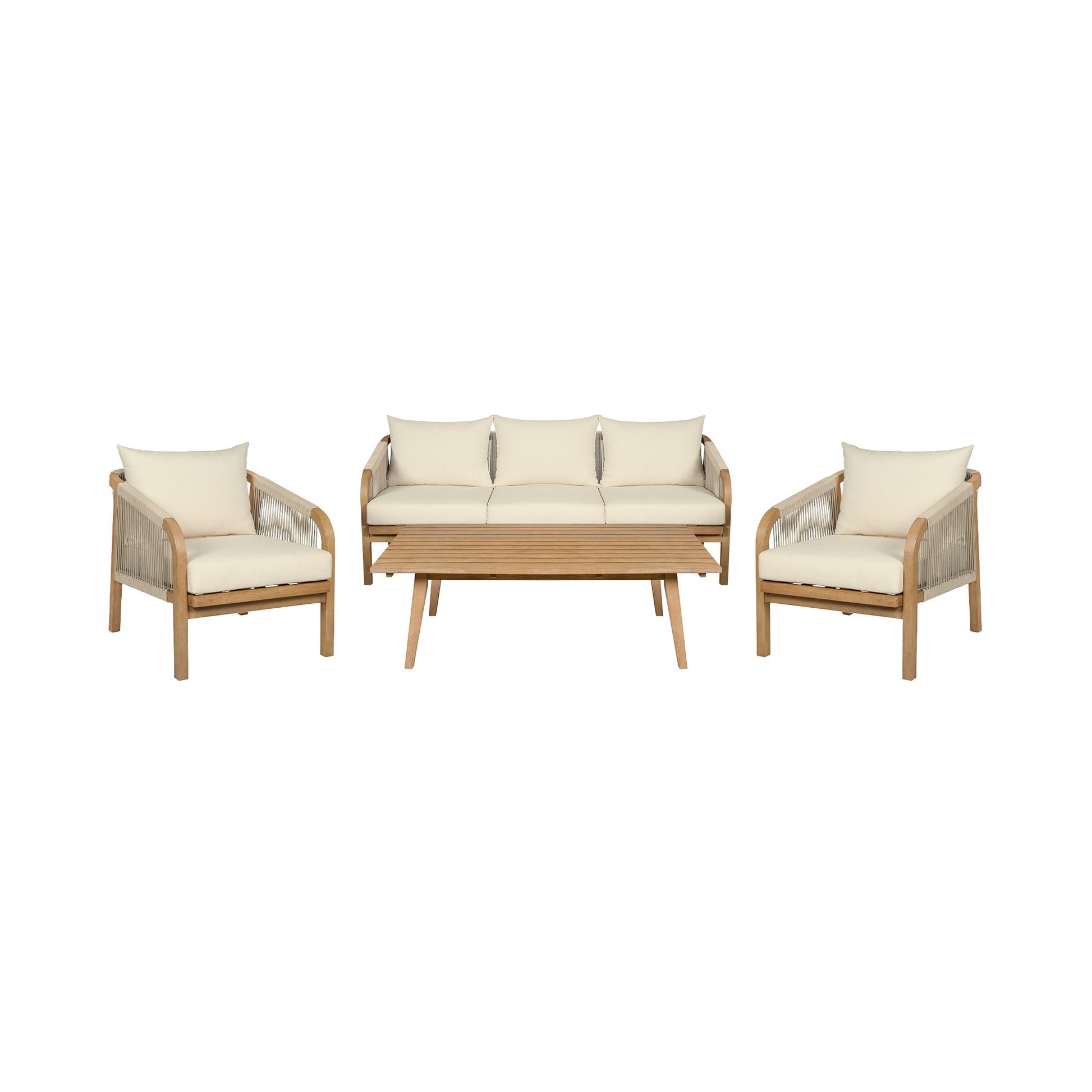 Cypress - 4 Piece Outdoor Patio Conversation Set - Blonde Eucalyptus / Ivory
