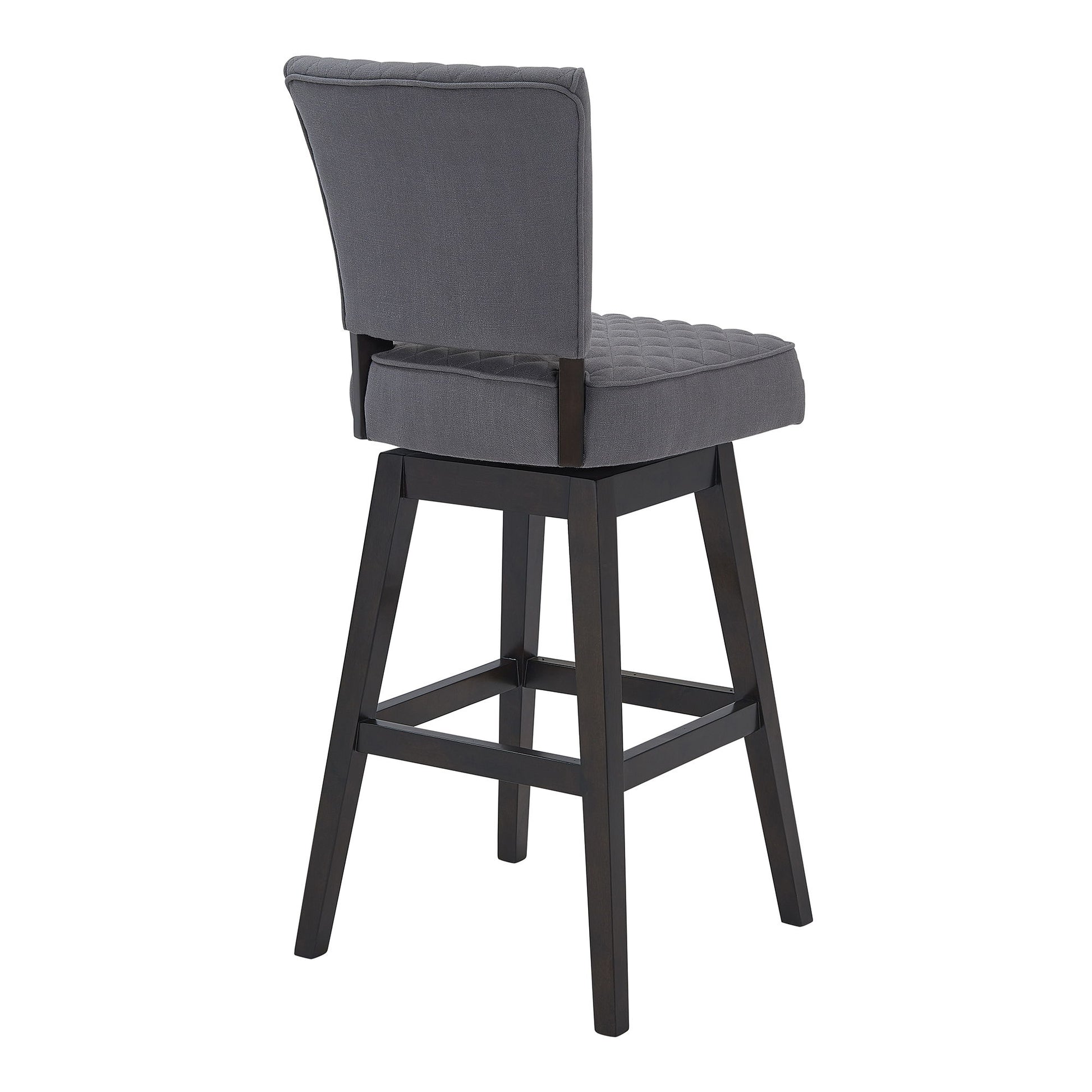 The Armen Living Gia Swivel Bar Stool is an ideal addition to any modern household. The strong wooden frame is constructed from eucalyptus and birch wood and features a beautiful finish that is further complemented by the soft fabric upholstery. The 360-degree swivel function provides optimal mobility that allows you to easily engage with your friend and family regardless of their place in the room! The high-density foam cushioned seat and back provide ergonomic properties to keep your back healthy and properly aligned that’s further accented by the diamond tuft stitching. The Gia's legs are tipped with floor protectors, assuring that the barstool will not damage hardwood floors when moved. The armless design makes the Gia easy to pull up to your kitchen island, peninsula counter, or home bar!