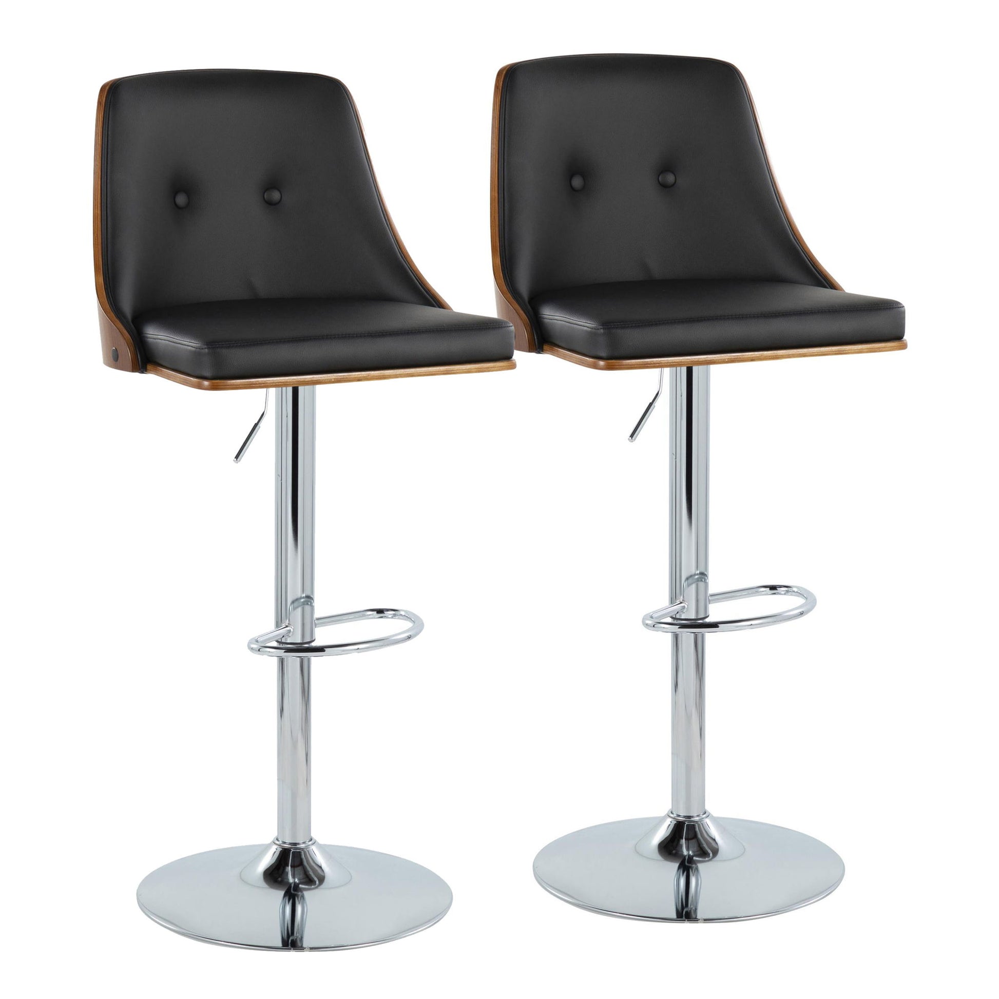 Gianna - Mid-Century Modern Adjustable Barstool With Swivel With Oval Footrest (Set of 2) - Walnut / Black