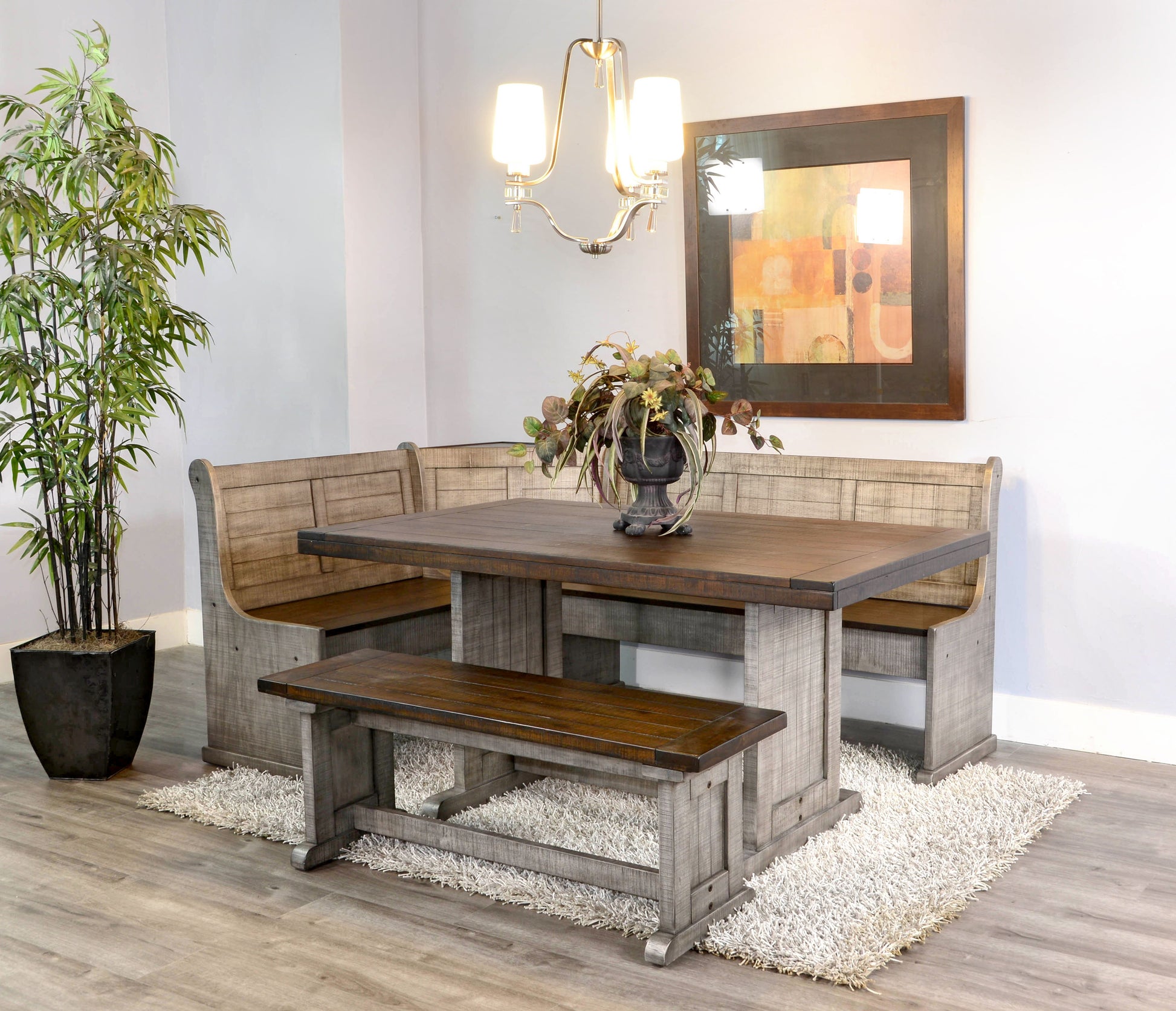 The Homestead Hills Breakfast Nook is beautifully crafted with mahogany solids and veneers that accentuate its beauty. The versatile storage benches are reversible to fit any space blending style and function.