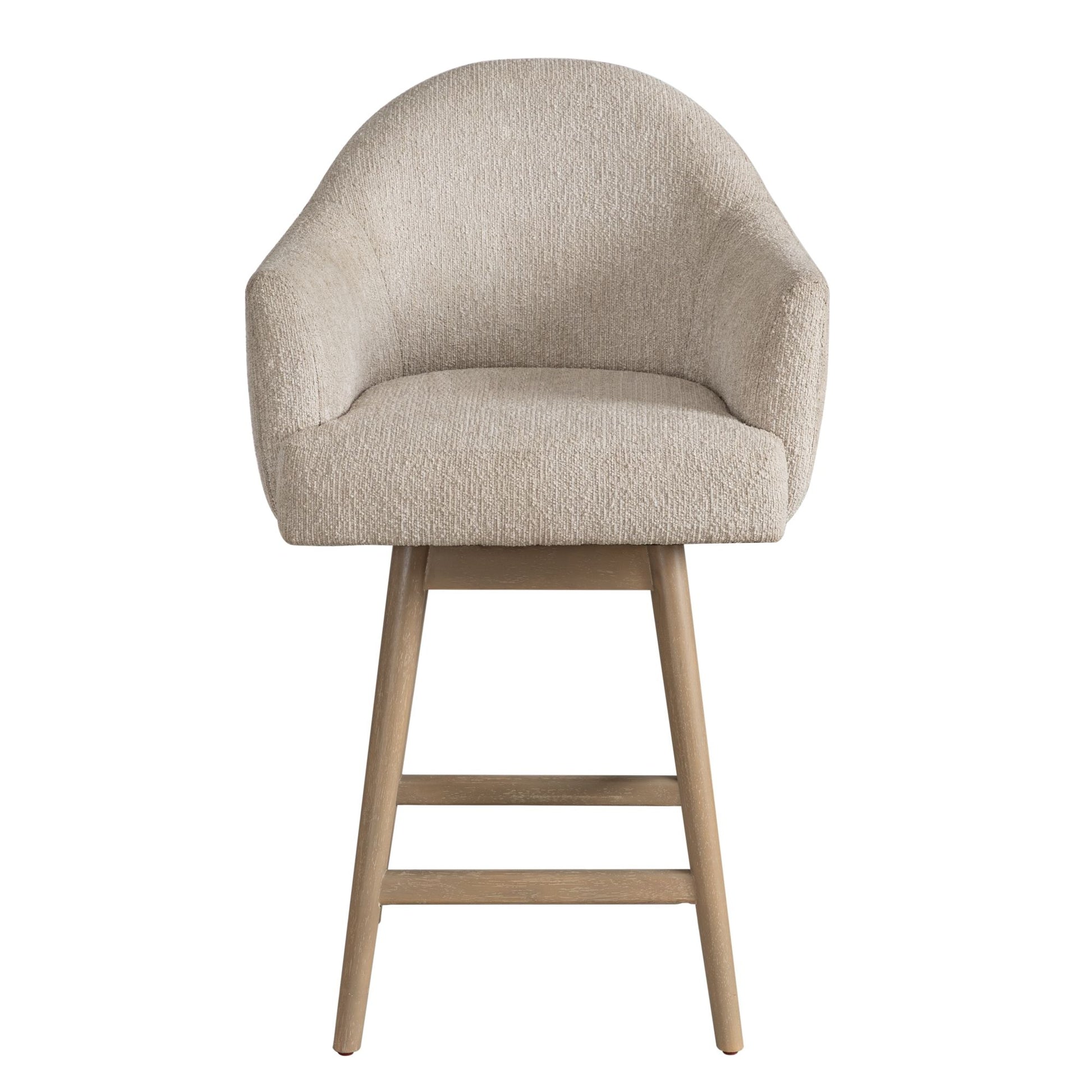 Available in two versatile heights – 26-inch counter height and 30-inch bar height – the Jaxon Barstool caters to a variety of settings. Its sturdy rubberwood frame, finished with a brushed technique, highlights the natural beauty of the wood while ensuring long-lasting durability. The 360-degree swivel feature adds ease of movement, making it perfect for lively conversations and convenient access.