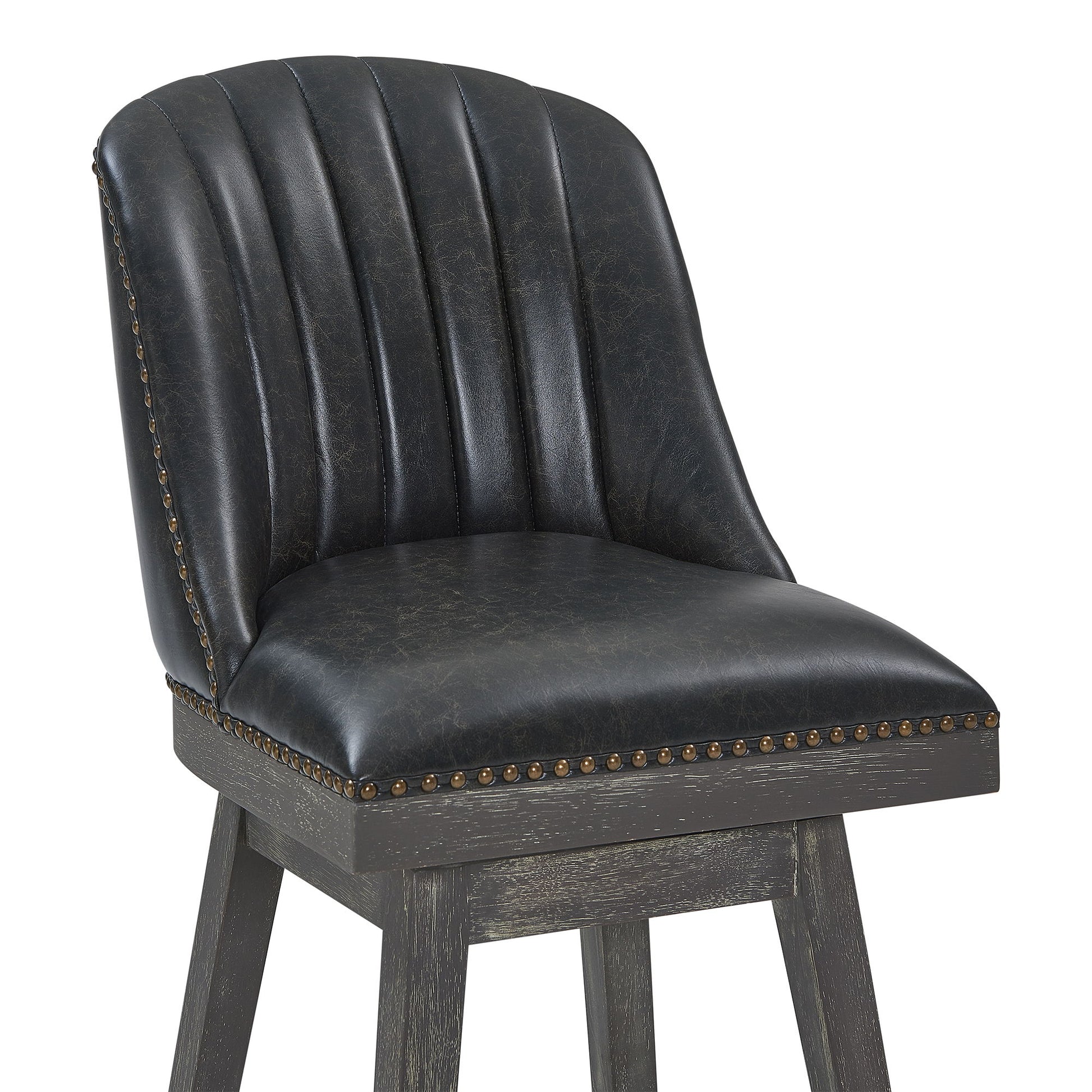 The Journey Counter Height Swivel Faux Leather and Wood Bar Stool from Armen Living is a perfect addition to any home or apartment. The channel tuft stitching design on the seat back presents a unique contemporary aesthetic without compromising on comfort. The high-density foam cushion is wrapped in soft faux leather and further accented by the convenient footrest that allows for comfortable seating for hours on end. The full 360-degree swivel motion is ideal for engaging with all your guests regardless of their place in the room, providing optimal mobility. The Journey’s frame is constructed from eucalyptus and birch wood and help ensure longevity and reliability. Featuring floor protectors on the feet of the stool, the Journey counter stool will not scratch or damage your floors when being moved.