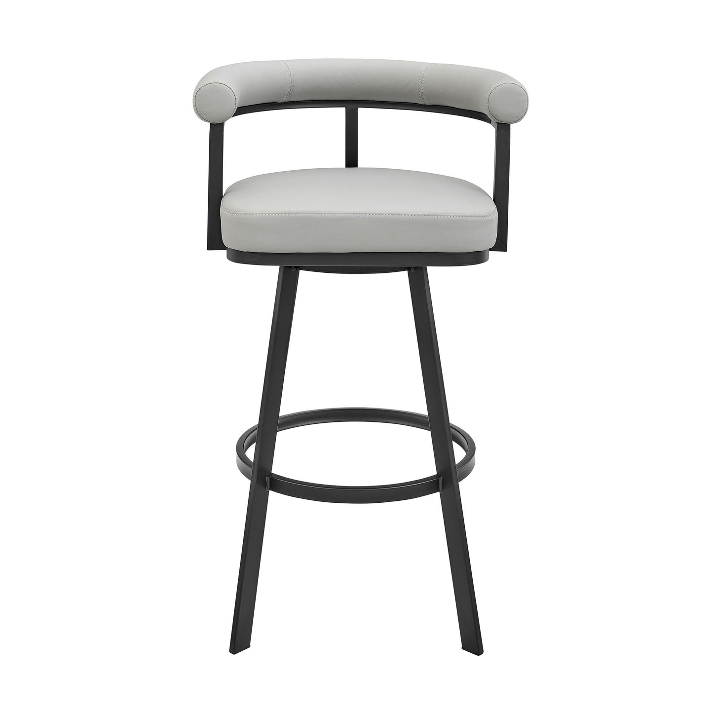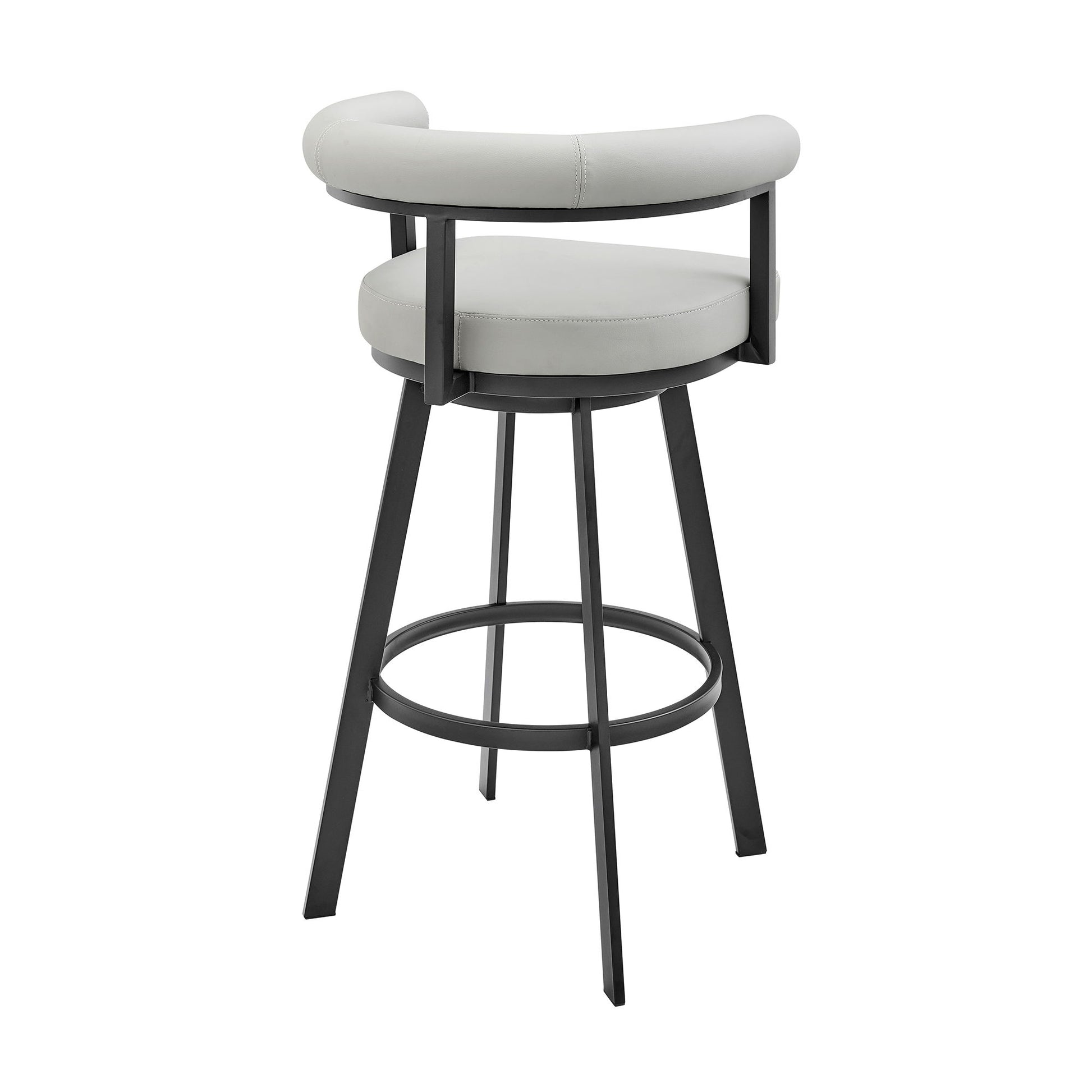 Glam up your space with the flair of our Magnolia swivel bar or counter stool in faux leather and metal from Armen Living. Featuring a minimal and streamlined barrel back, our mid-century modern counter stool vouches for a sleek and inviting look. The plush cushioning at the back and the padded seat offers a comfortable seat while the open back allows for breathability. Uplifted with a chic metal frame, our stylish counter or barstool makes a powerful design statement. Upholstered in faux leather, it provides a comfortable stay at a high dining area, kitchen counter, or worktable. Faux leather does not crack easily and is stain resistant, does not fade easily and is also UV resistant. Counter or bar height stools that feature a swivel mechanism tend to be much more convenient for everyday use or when entertaining. The wonderful full 360-degree swivel function allows for maximum mobility. The smooth glide swivel function allows you to change directions with ease, making this your new favorite seat in your home.