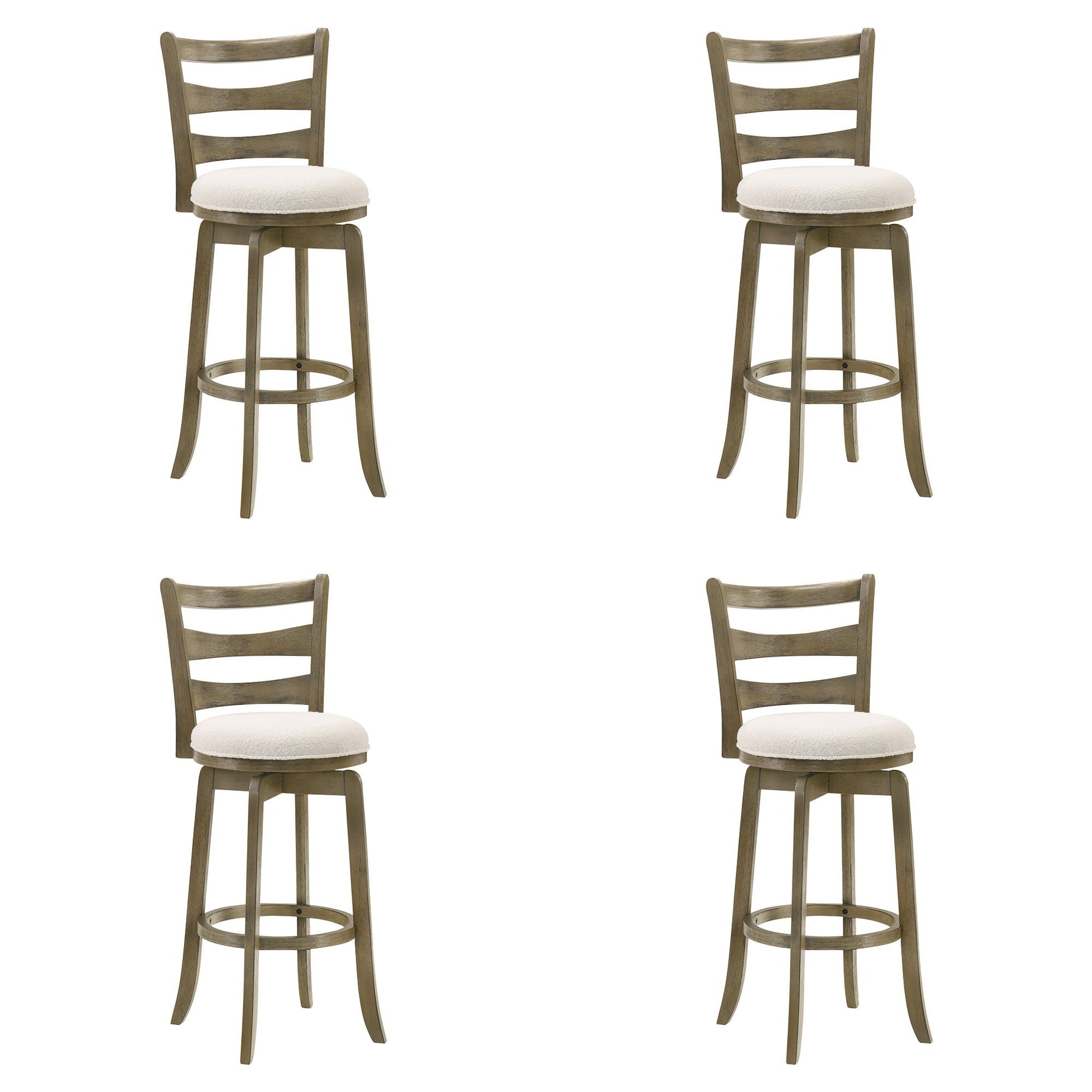 Melindra - Modern Farmhouse Swivel Wood Bar Height Kitchen Bar Stool (Set of 4) - Putty Brown Finish With White Boucle Fabric Upholstered Seat