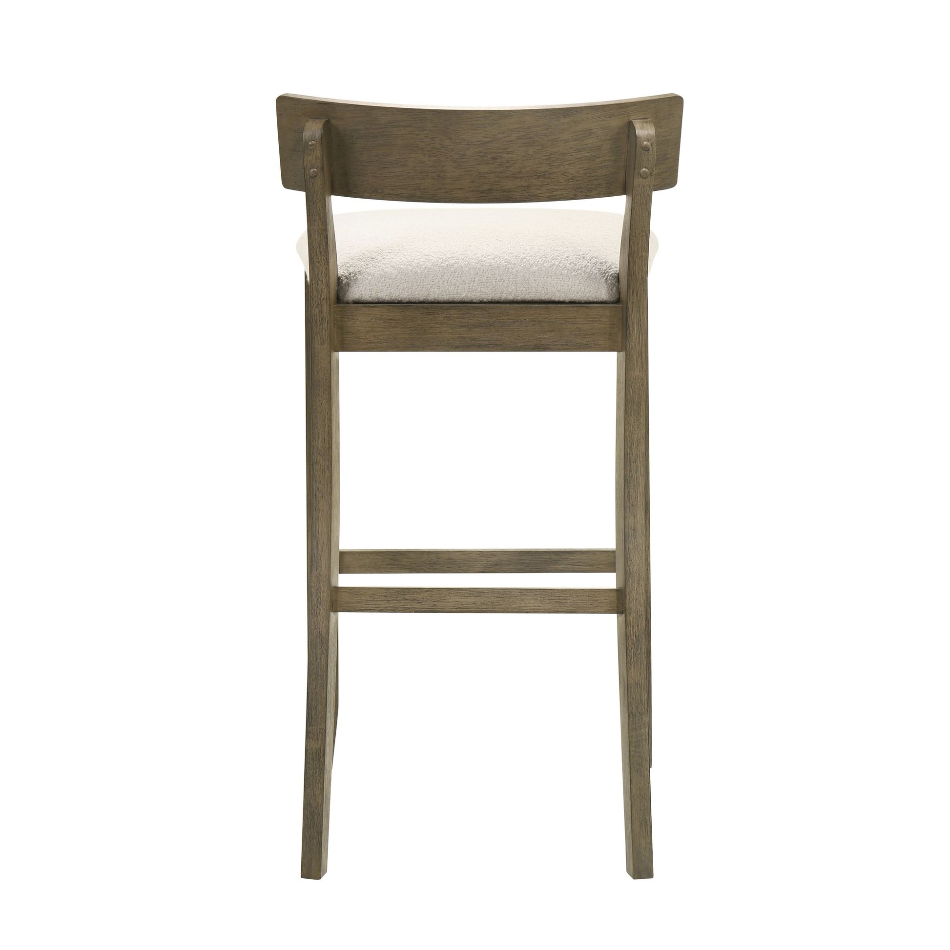 Merie - Modern Transitional Wood Bar Height Kitchen Bar Stool (Set of 2) - Putty Brown Finish With White Boucle Fabric Upholstered Seat