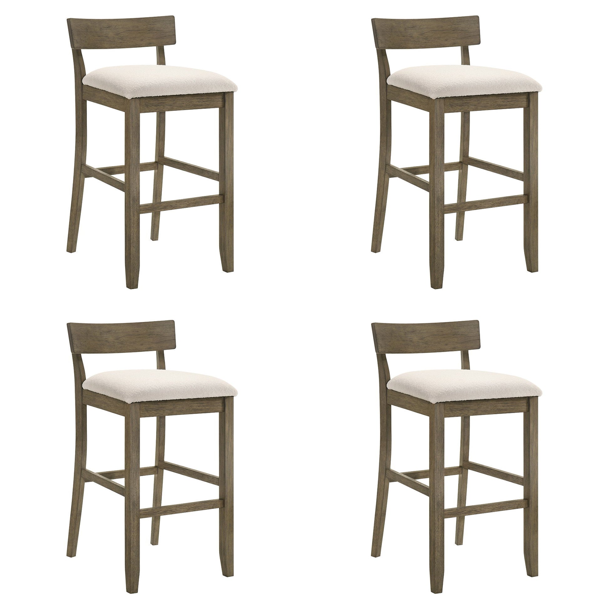 Merie - Modern Transitional Wood Bar Height Kitchen Bar Stool (Set of 4) - Putty Brown Finish With White Boucle Fabric Upholstered Seat