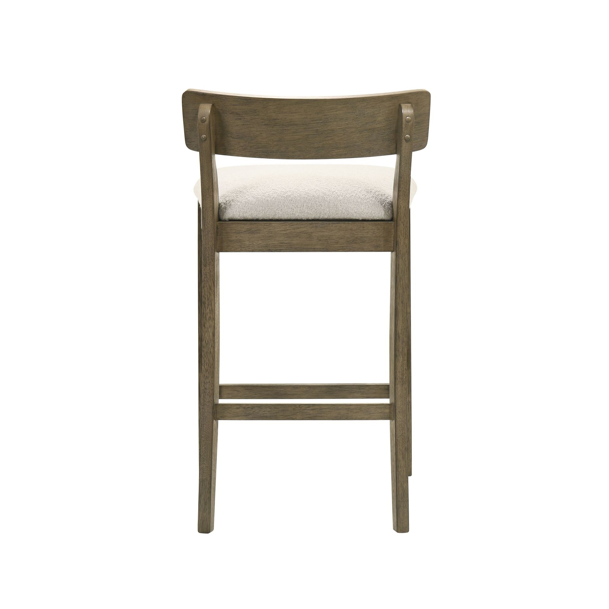 Merie - Modern Transitional Wood Counter Height Kitchen Bar Stool (Set of 2) - Putty Brown Finish With White Boucle Fabric Upholstered Seat