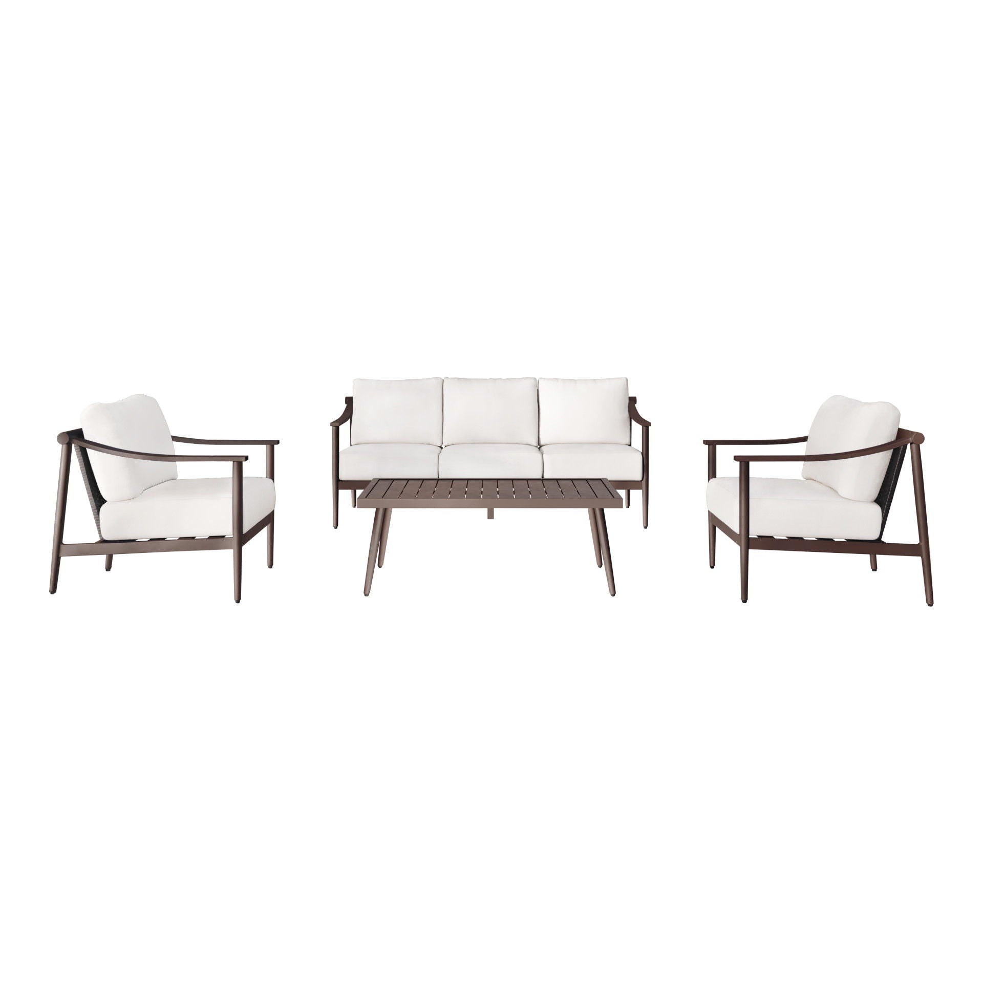 Moana - 4 Piece Living Room Set (Sofa & 2 Club Chairs & Slat Top Coffee Table) - White