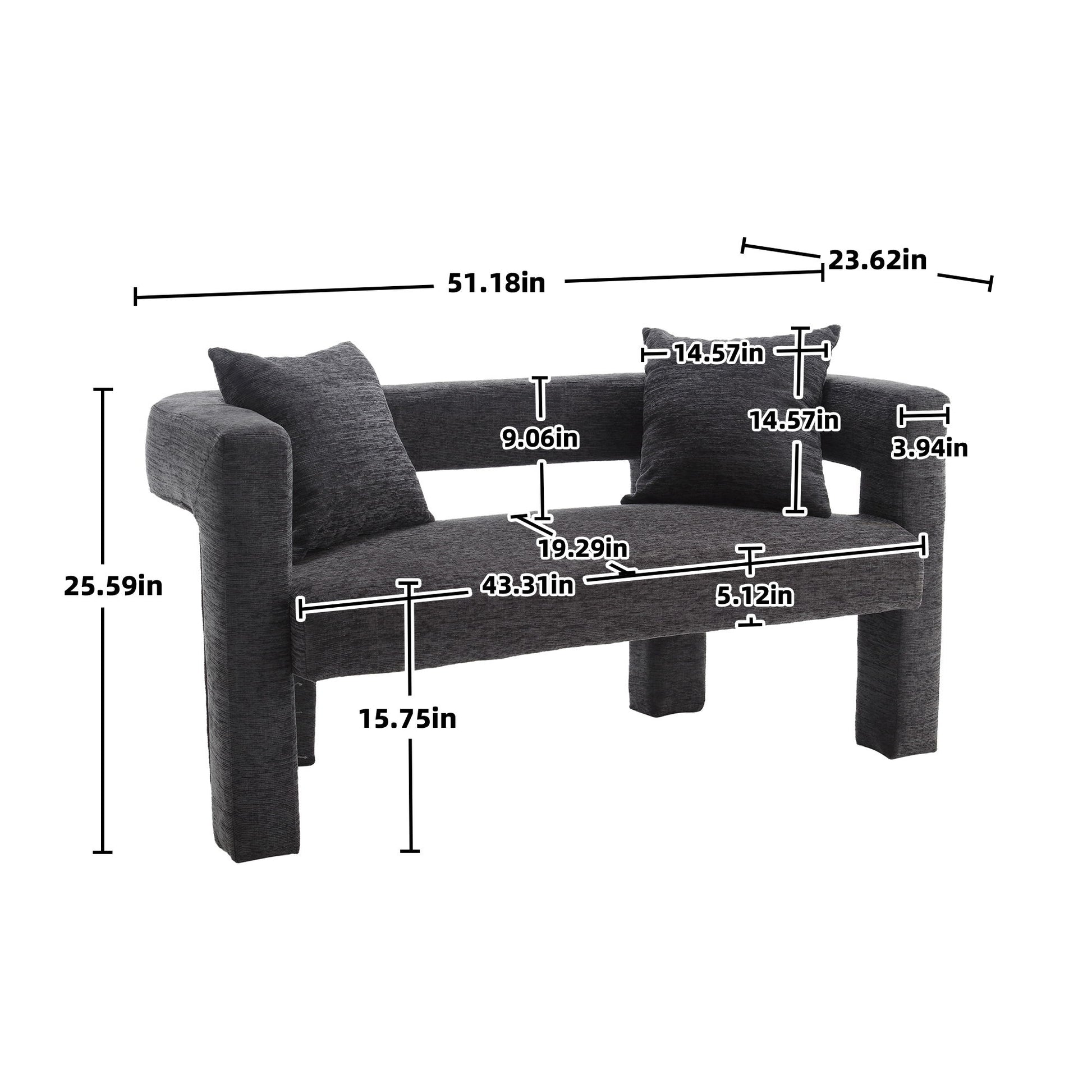 Modern Loveseat Sofa, Comfy Upholstered 2 Seater Sofa, Small Loveseat Accent Couch For Living Bedroom Leisure Areas - Carbon Black