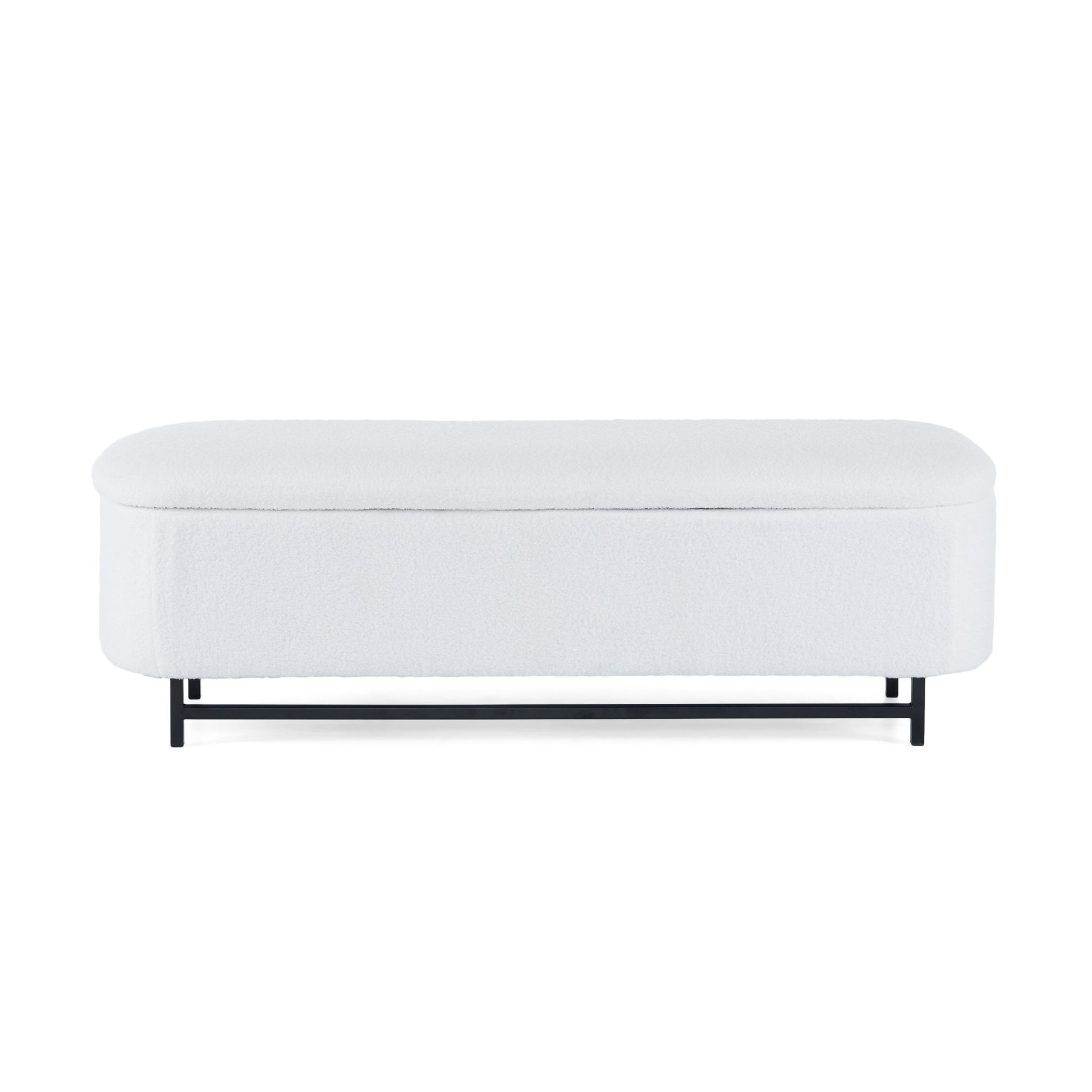 Modern Elegant Ottoman With Spacious Storage Function With Metal Feet - White / Black