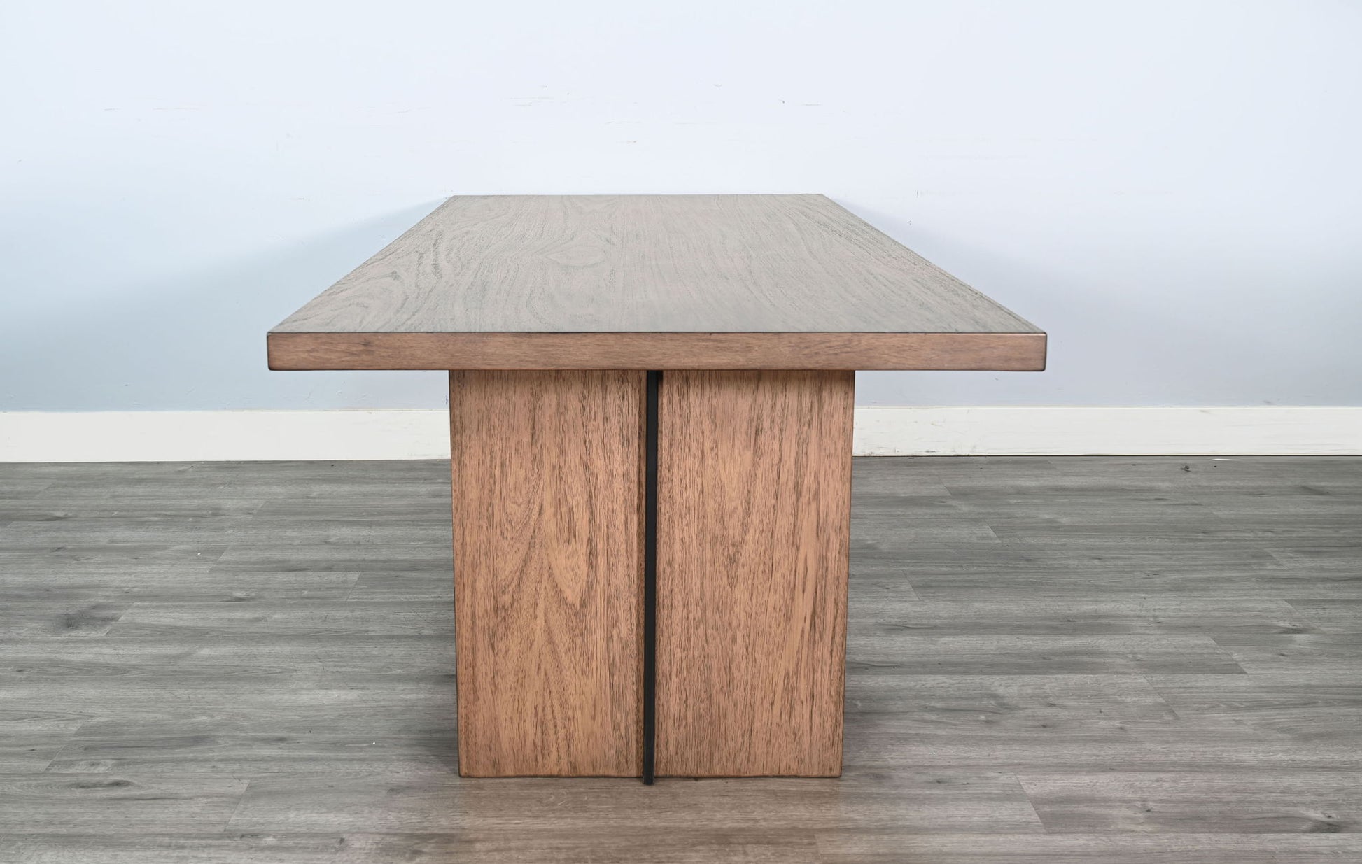 Make a bold statement in your dining room with this stunning rectangular dining table. Crafted with a rich wood finish and complemented by dramatic arched base supports in a contrasting black, this table exudes both modern elegance and architectural charm. Spacious enough to host family gatherings or formal dinners, its sturdy design ensures long-lasting durability while adding a sophisticated centerpiece to your dining space.