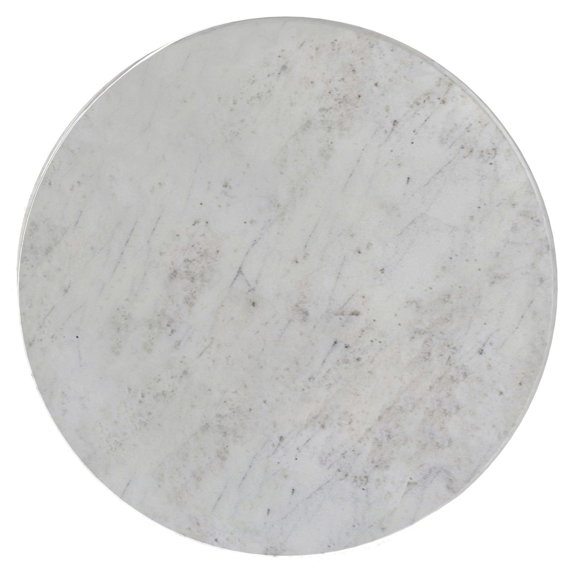 - Hand-finished powder-coated metal, flared base with an Antique Brass finish and White Marble tabletop.