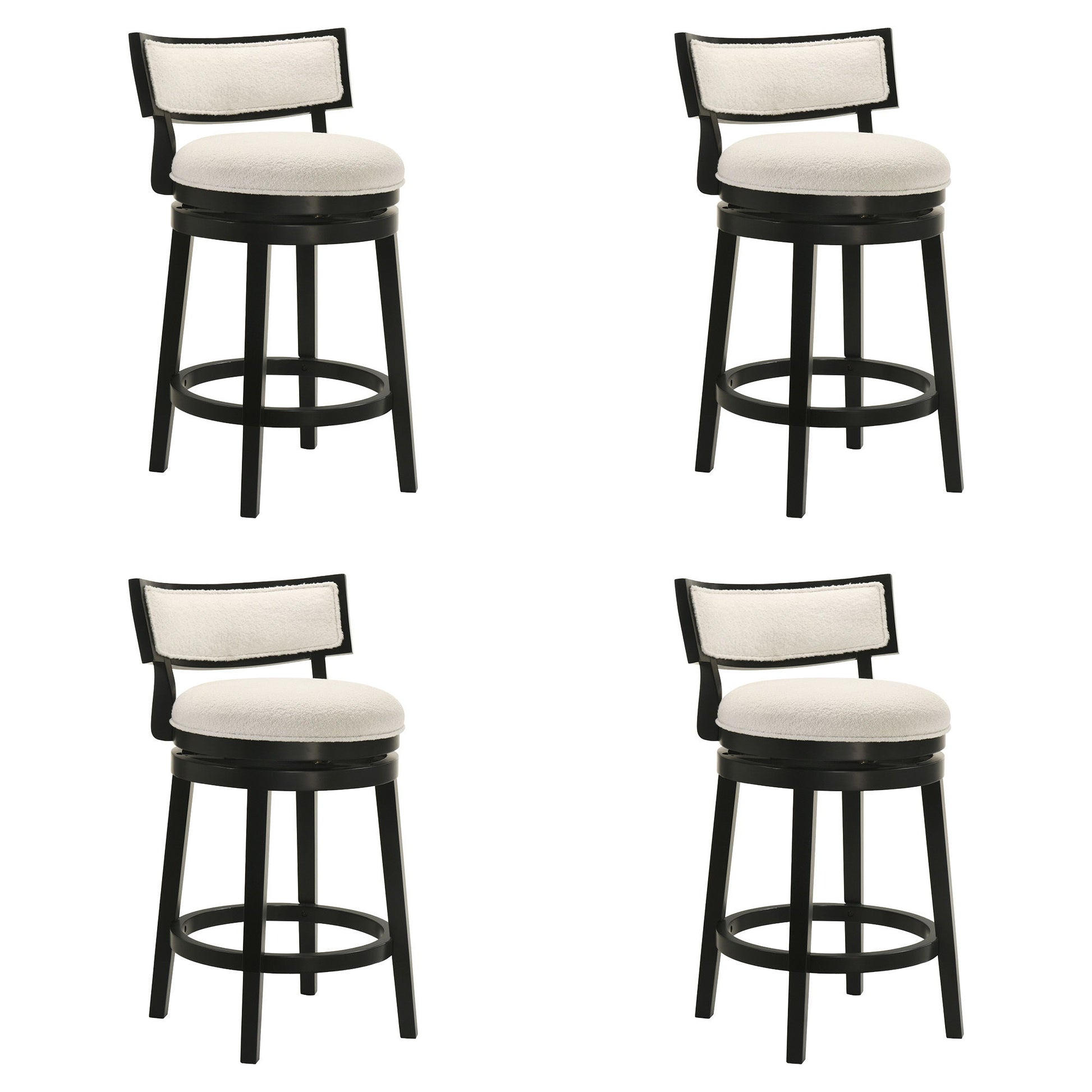 Noely - Modern Farmhouse Swivel Wood Counter Height Kitchen Bar Stool (Set of 4) - Black Finish With White Boucle Fabric Upholstered Seat