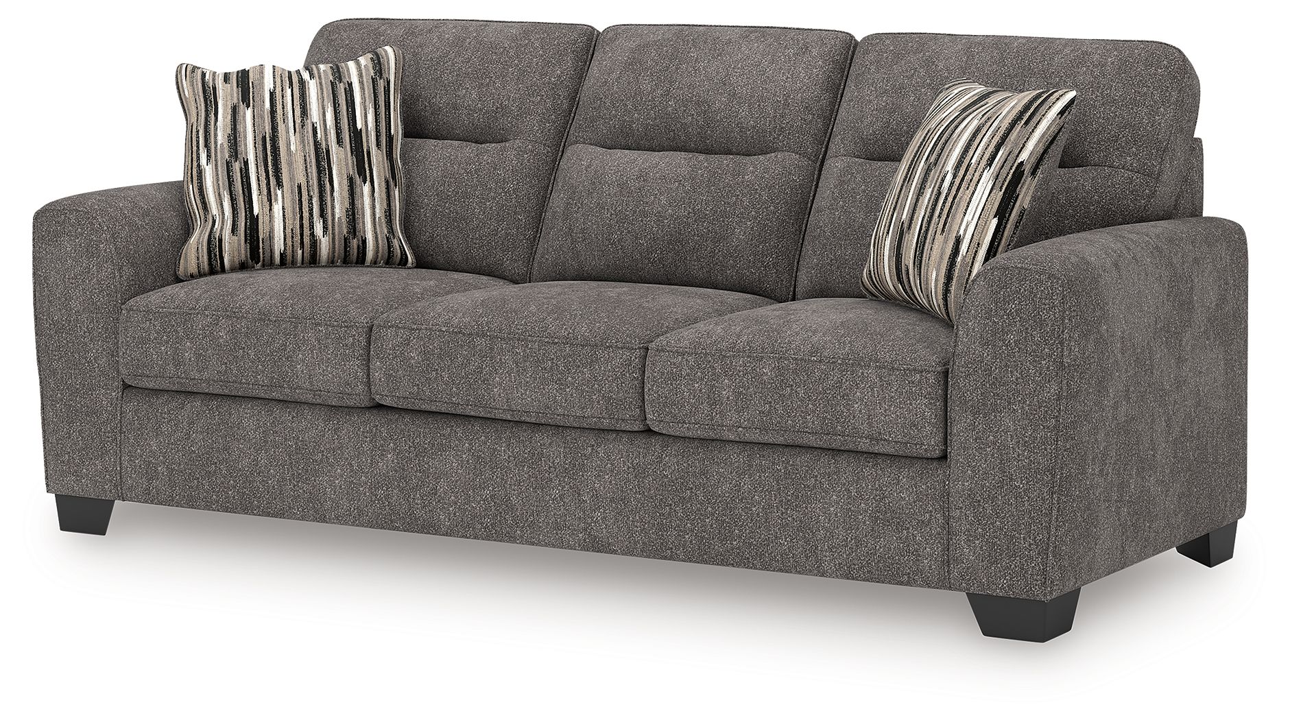 Strike a balance between the indulgent comfort you crave and the contemporary aesthetic you long for. The fabulously soft upholstery of this sofa takes neutrals to new heights. Plus there's plenty of room to spread out and relax solo or with your bestie. Geometric-patterned accent pillows perfect the richly on-trend aesthetic.