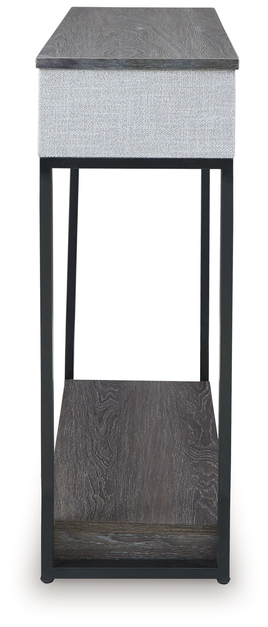 With its decidedly contemporary form, this console sofa table wows with subtly integrated functional features. Wirelessly connect your audio to its built-in speakers for ambiance as you host guests or relax solo. Need to charge up as you lounge? Rest this console against the back of your sofa to keep its wireless and USB charging options in reach. The table's spacious top and lower shelf leave plenty of room to customize the look with your favorite decorative accents.