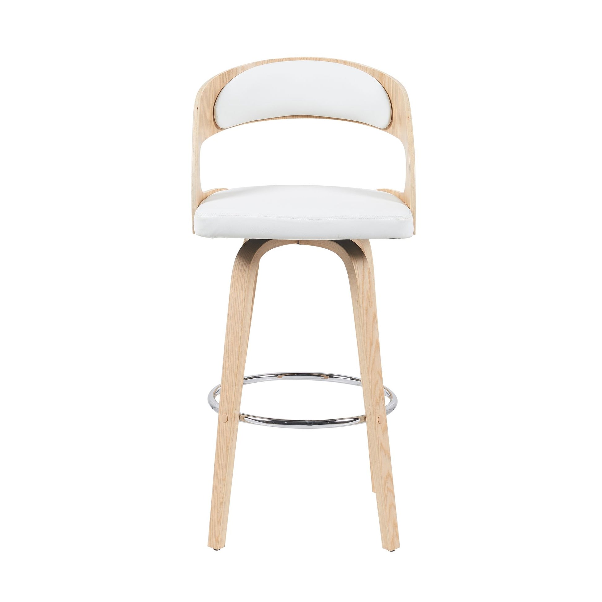 Bring elevated Mid-Century charm and modern versatility to your space with the Shelly Swivel Counter or Bar Height Stool. Designed to offer both visual appeal and everyday comfort, the Shelly features a gently curved wood backrest and a supportive cushioned seat, upholstered in smooth, easy-to-clean faux leather. The open-back design adds breathability and creates a lightweight silhouette that complements a wide range of interior styles—from retro-modern to contemporary. Perfect for kitchens, home bars, or casual dining spaces, the Shelly’s 360-degree swivel mechanism lets you move effortlessly and stay engaged in conversation no matter where the action is. The stool’s sturdy four-leg wood base is reinforced by a round chrome footrest, offering added stability and relaxed support. Its well-balanced proportions make it an excellent seating choice for both compact apartments and spacious homes. Now available in a range of finishes and upholstery combinations—including our newest variant in Patterned Oak Finish with White Faux Leather Upholstery—the Shelly Collection includes both counter height and bar height options to suit your layout. Whether you're furnishing a breakfast nook or designing a modern entertaining area, the Shelly offers a timeless seating solution that blends durability, comfort, and style.