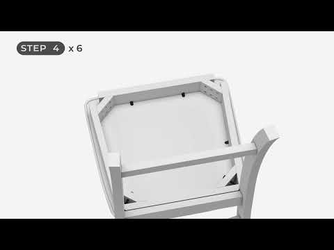 Set the scene for coastal chic or modern farmhouse living with this counter height dining set. The clean-lined, simply striking table doubles the charm with a brown plank effect top, paired with a grayish white base with a rub through effect for timeworn appeal. Six bar stools with classic ladderback styling and comfortably upholstered seats make room for one and all.