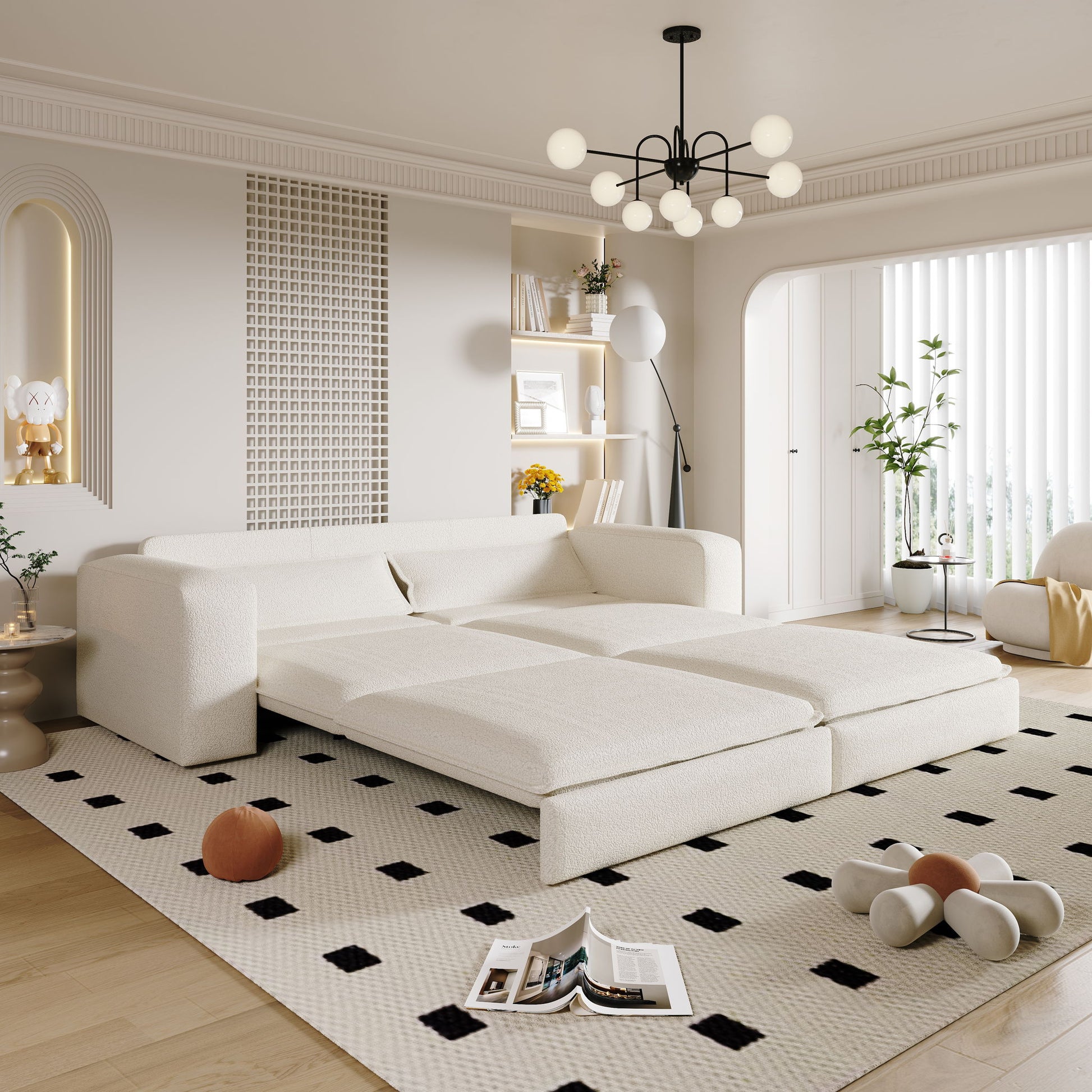 King Size Sleeper Sofa Bed, Pull Out Sofa Bed, 3 In 1 Convertible Sleeper Sofa, 3 Seat Couch With 2 Lumbar Pillows For Living Room - Beige