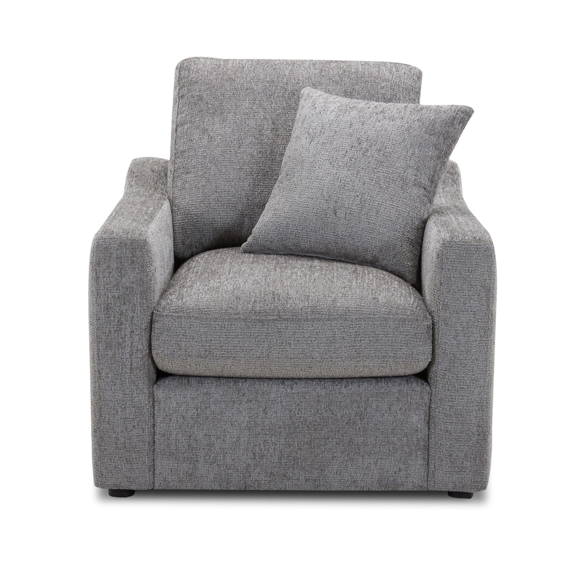 Designed for deep-seated comfort, this chair is the perfect place to unwind after a long day. The chair is exquisitely upholstered in a durable, 100-percent polyester fabric with textural dimension and softness, providing a luxurious and inviting feel. The comfort pillows and seat cushions are encased in cotton, down-proof channeled ticking to help them keep their shape and prevent feather migration, ensuring the chair maintains its plushness for years to come. The seat cushions are padded with high-density Dacron and topped with sterilized down and feathers for maximum plushness, providing a cloud-like feel. The seating feature no-sag springs and high-density webbing for long-lasting support, ensuring your comfort for years to come.