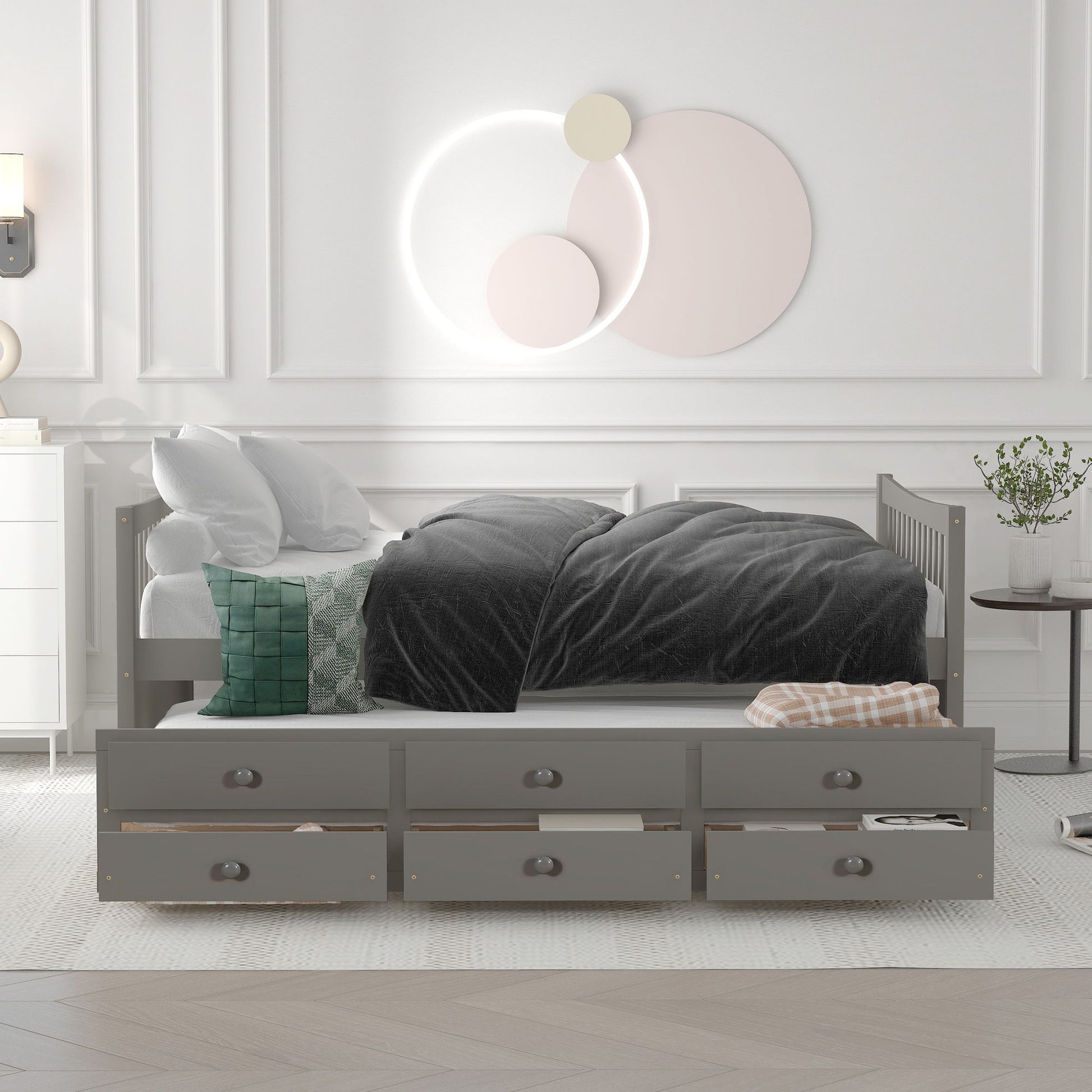 Full Size Daybed With Twin Size Trundle And Drawers - Gray
