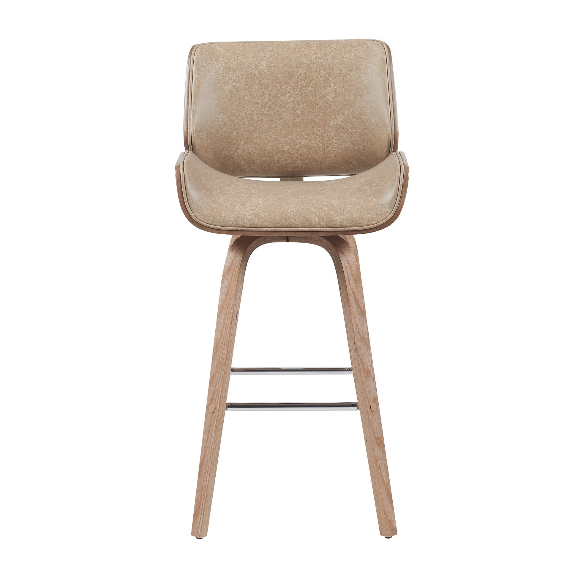 Bring a touch of Mid-Century charm and functional elegance to your home with the Tyler Swivel Counter and Bar Stool Collection. With its contoured wrap-around backrest, gently flared silhouette, and comfortably cushioned seat, Tyler delivers an elevated seating experience ideal for kitchen islands, peninsulas, and home bars. The modern, sculpted form supports your back while offering a soft, ergonomic curve that enhances posture and visual flow. Engineered for versatility, the Tyler stool features a smooth 360-degree swivel mechanism, allowing you to stay engaged and mobile during conversations or meals. The generously padded seat and back are upholstered in performance faux leather, offering the luxurious feel of leather with everyday durability and easy cleaning. The collection includes several rich upholstery choices, such as vintage green, vintage brown, black, gray, and cream, carefully paired with frame finishes like walnut, black brushed, and white wash to suit a variety of interior aesthetics. The base is crafted with a strong bentwood frame and a chrome-finished steel footrest, combining retro character with strength and stability. Available in counter height and bar height to fit your layout, the Tyler collection makes it easy to style any gathering space with comfort, swivel functionality, and timeless flair.
