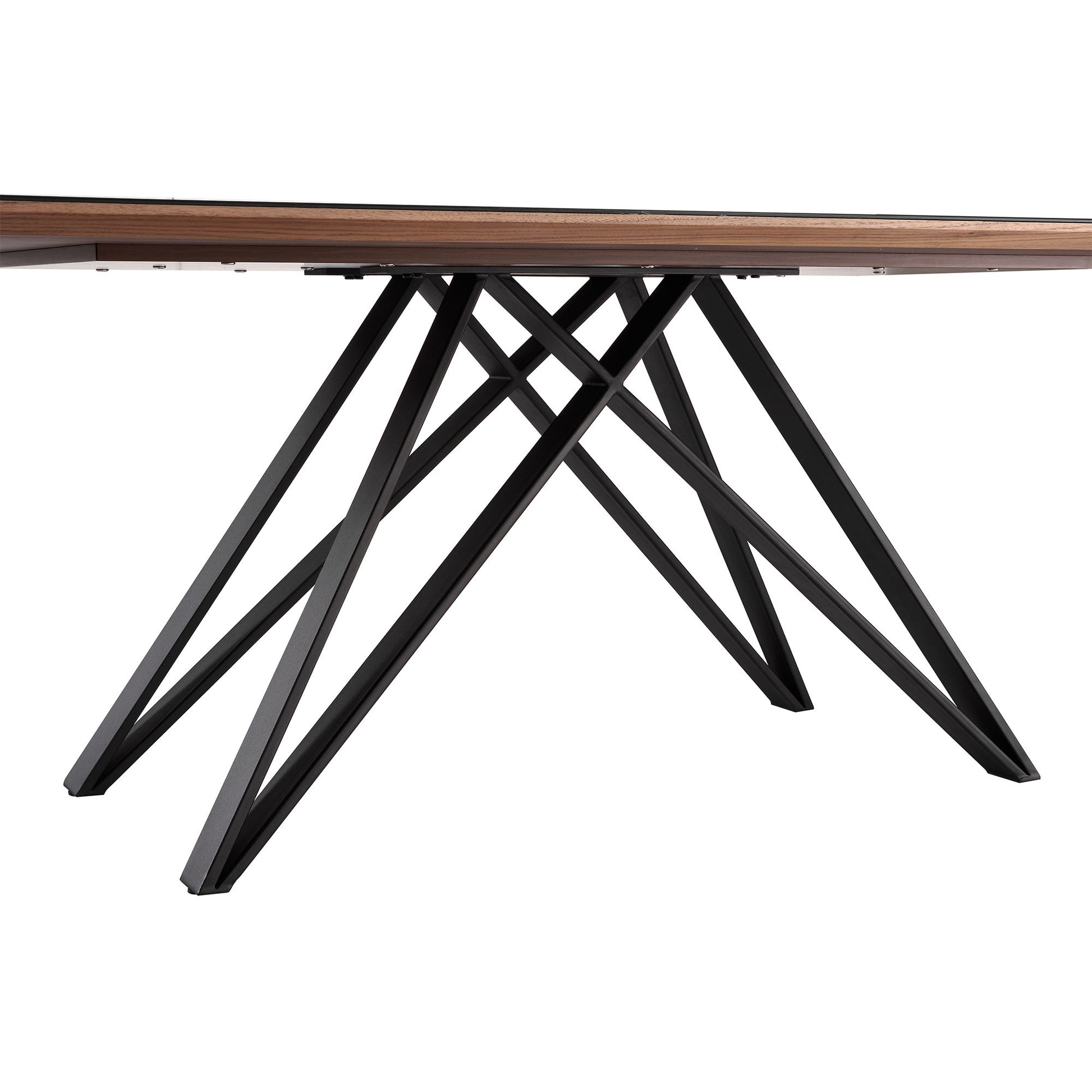 - Urbino Rectangle Dining Table In Matte Black Metal Finish With Walnut Wood And Glass Top