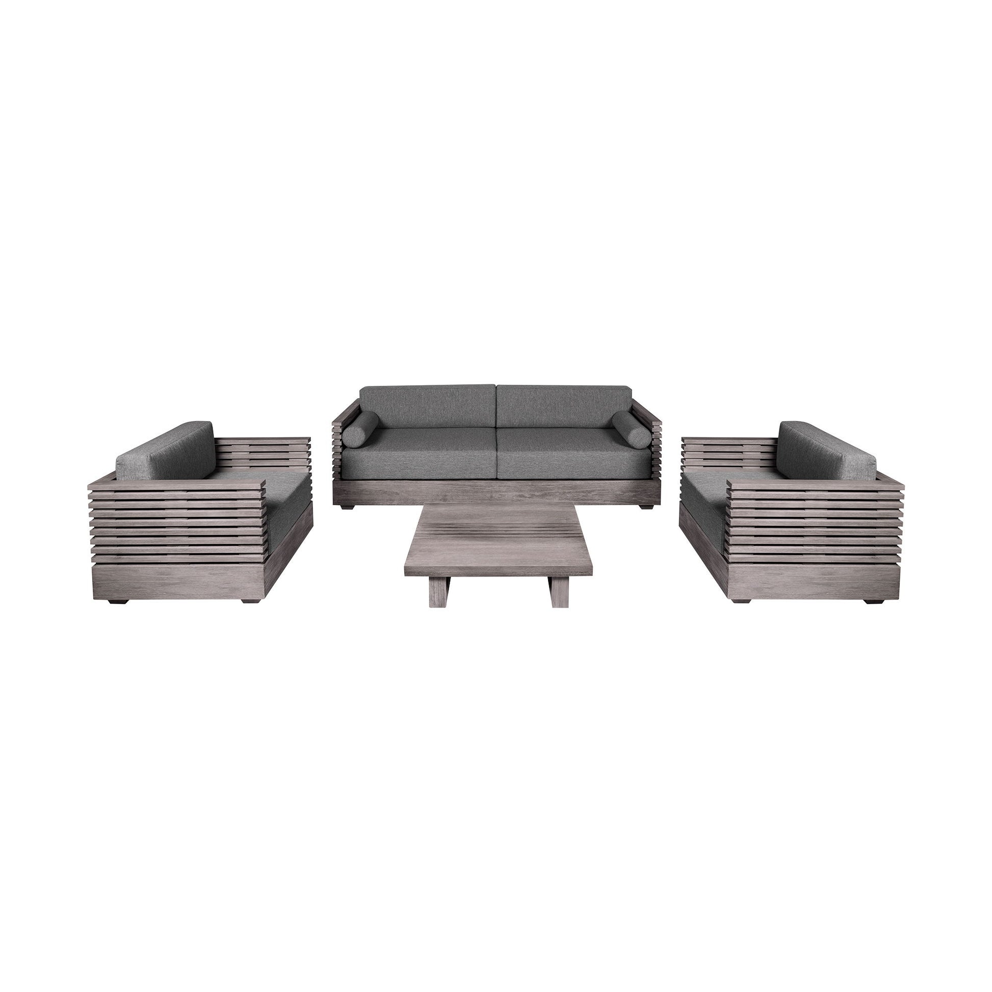 Transform your outdoor space into a haven of relaxation with the Vivid Outdoor Patio Seating Collection, a harmonious trio that redefines outdoor luxury. Elevate your outdoor living space with the Vivid Outdoor Patio Sofa, an exquisite blend of style and durability. Crafted from enduring Eucalyptus wood in a timeless gray hue, this sophisticated sofa seamlessly combines aesthetics with resilience. With water-resistant Eucalyptus and UV-resistant frame and fabric, it stands strong against the elements, ensuring comfort and style in any weather. The included gray Olefin cushions are easily removable and have a zipper closure for cleaning, add an extra layer of comfort. Whether hosting gatherings or enjoying a quiet evening under the stars, the Vivid Outdoor Patio Sofa offers a versatile and elegant seating solution. Complementing the sofa is the Vivid Outdoor Patio Chair, a masterpiece of design and comfort. With a gray Eucalyptus wood frame that exudes sophistication, this chair combines style with longevity. Sink into the plush Olefin cushion, and let the chair invite you to linger in relaxation. Easy to clean, the removable cushion cover maintains the chair's fresh allure, making it a perfect spot to unwind after a long day. Complete the ensemble with the Vivid Outdoor Patio Coffee Table, a stylish centerpiece that marries form and function. Crafted from gray Eucalyptus wood, this timeless table adds sophistication to any outdoor setting. Water-resistant and UV-resistant, it withstands the elements while providing a durable surface for snacks, drinks, or decor. The spacious design allows you to create a cozy corner, making it a practical and stylish addition to your patio ensemble. Invest in the Vivid Outdoor Patio Collection for quality, durability, and timeless style that transforms your outdoor space into a haven of relaxation.