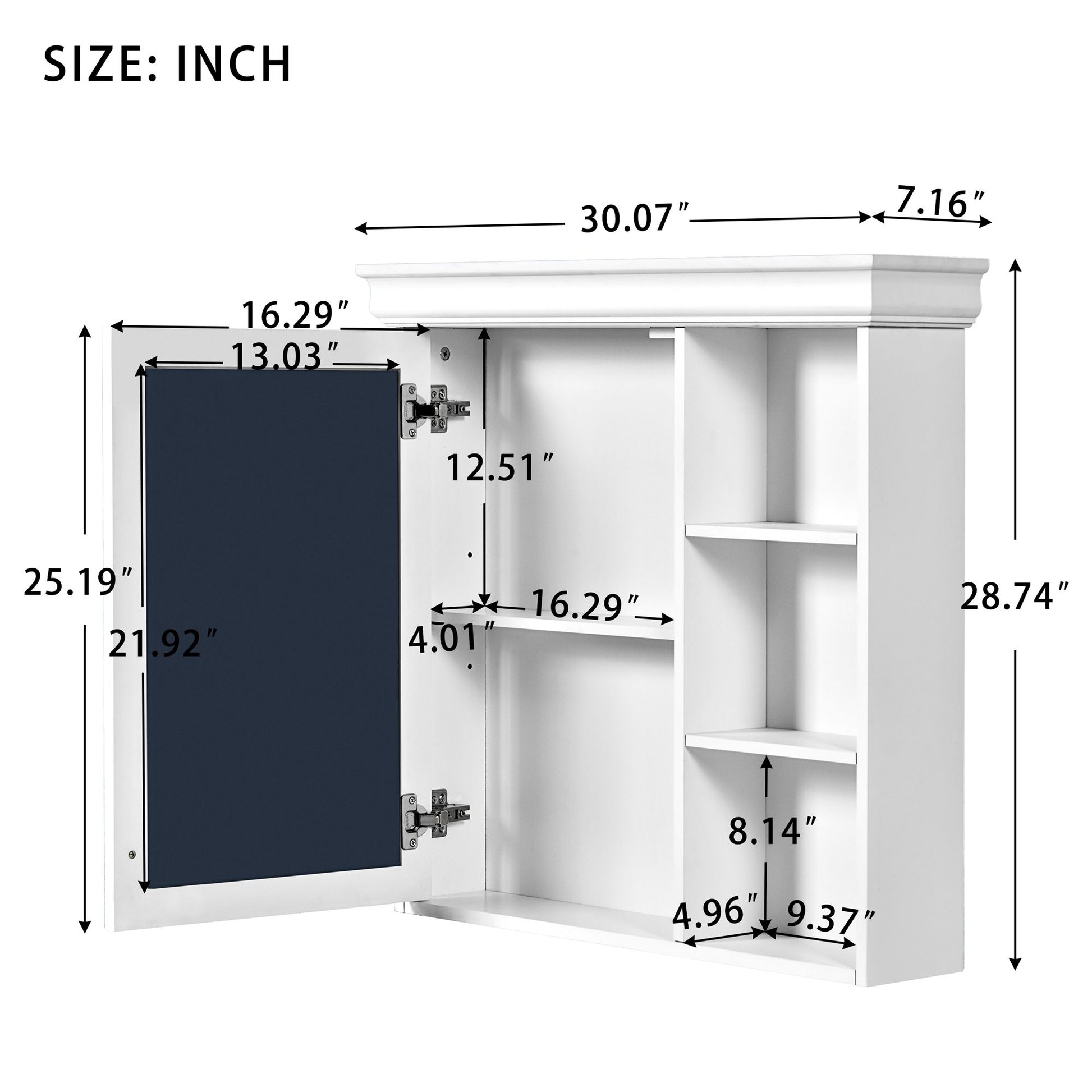 Wall Mounted Bathroom Medicine Cabinet With Mirror And Adjustable Storage With Soft Close Hinges